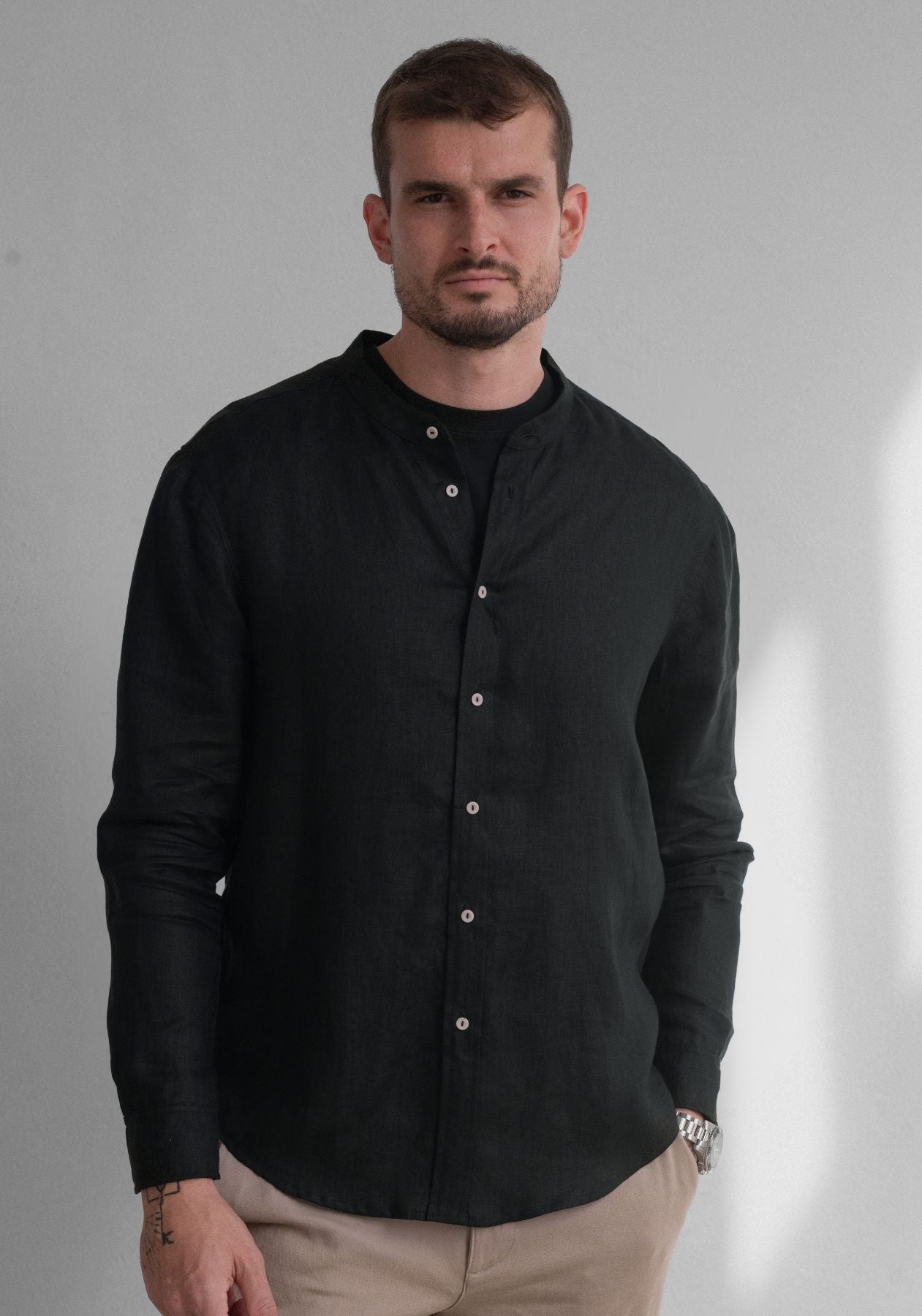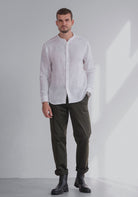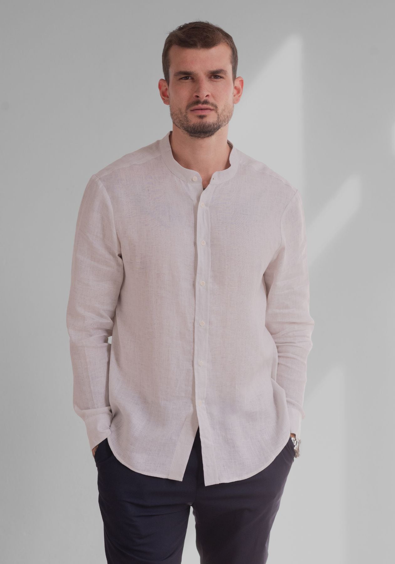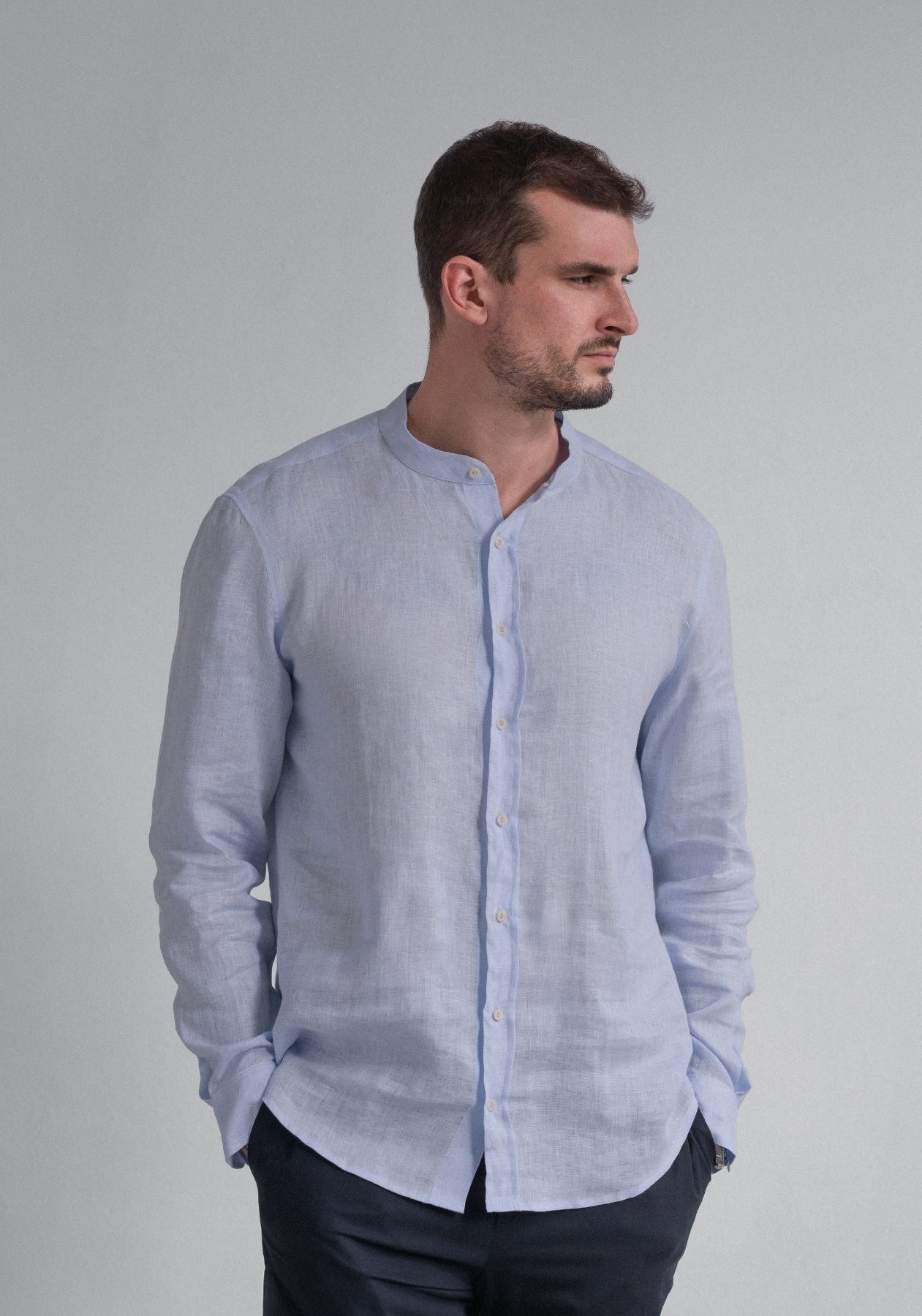 Pánská lněná košile bez límečku - regular fit