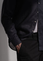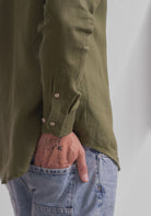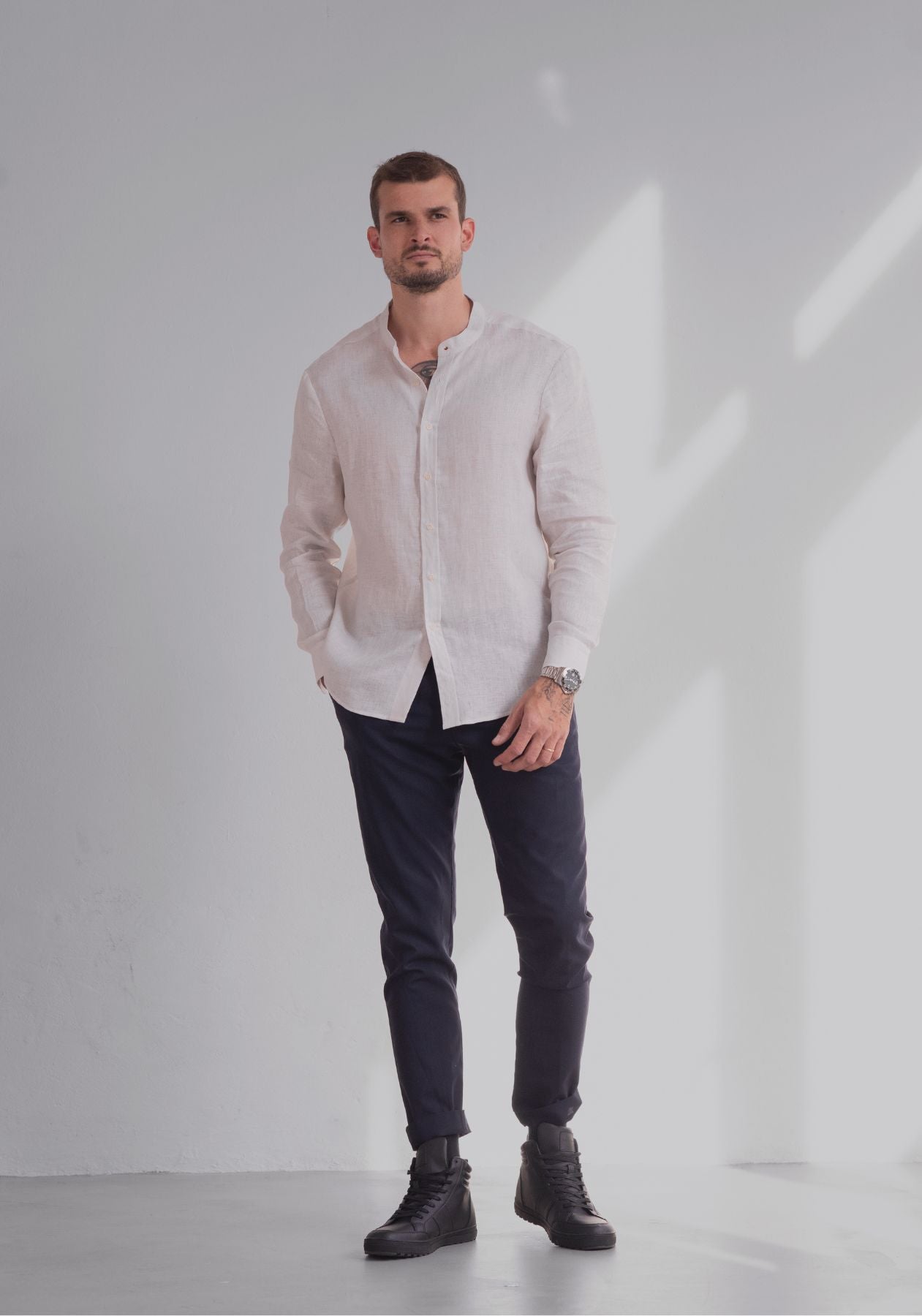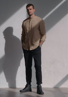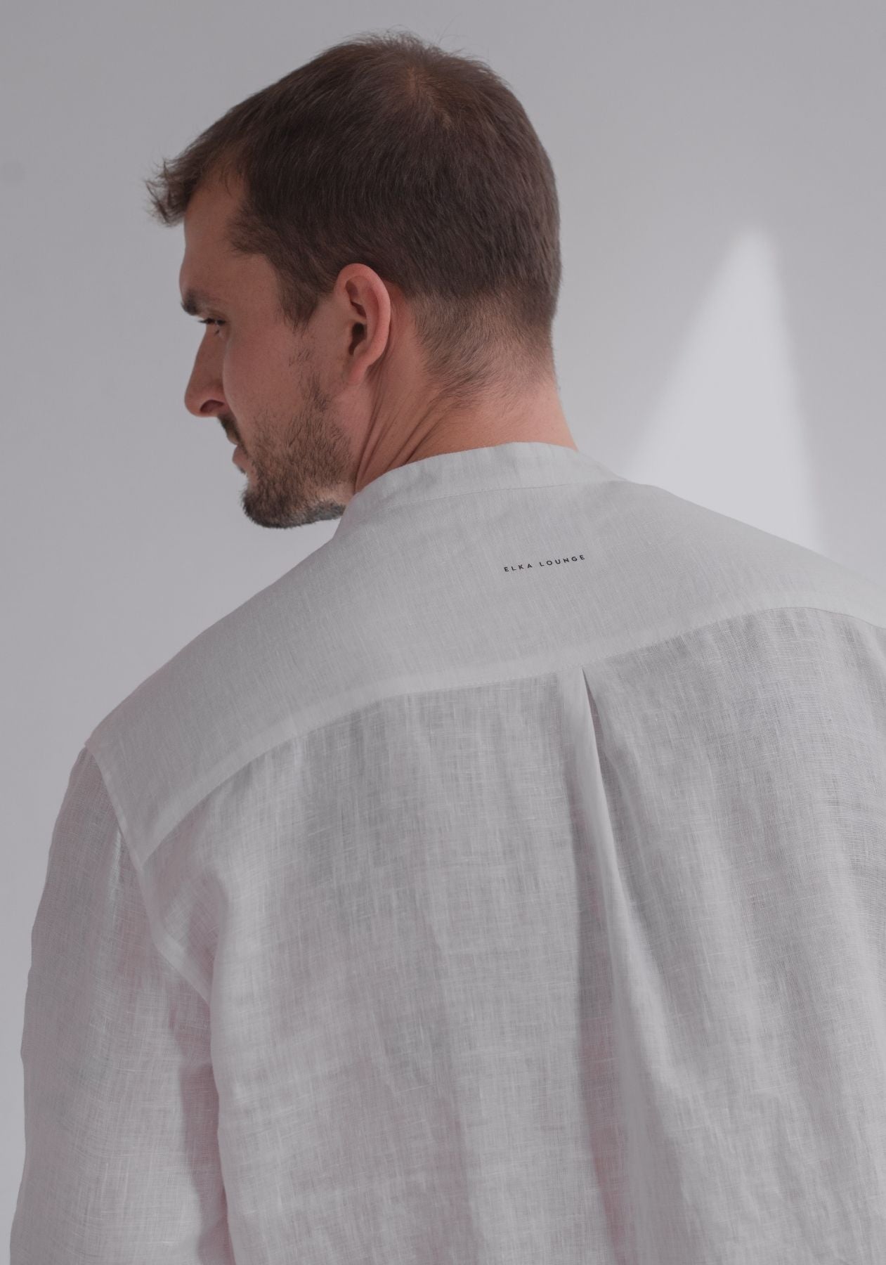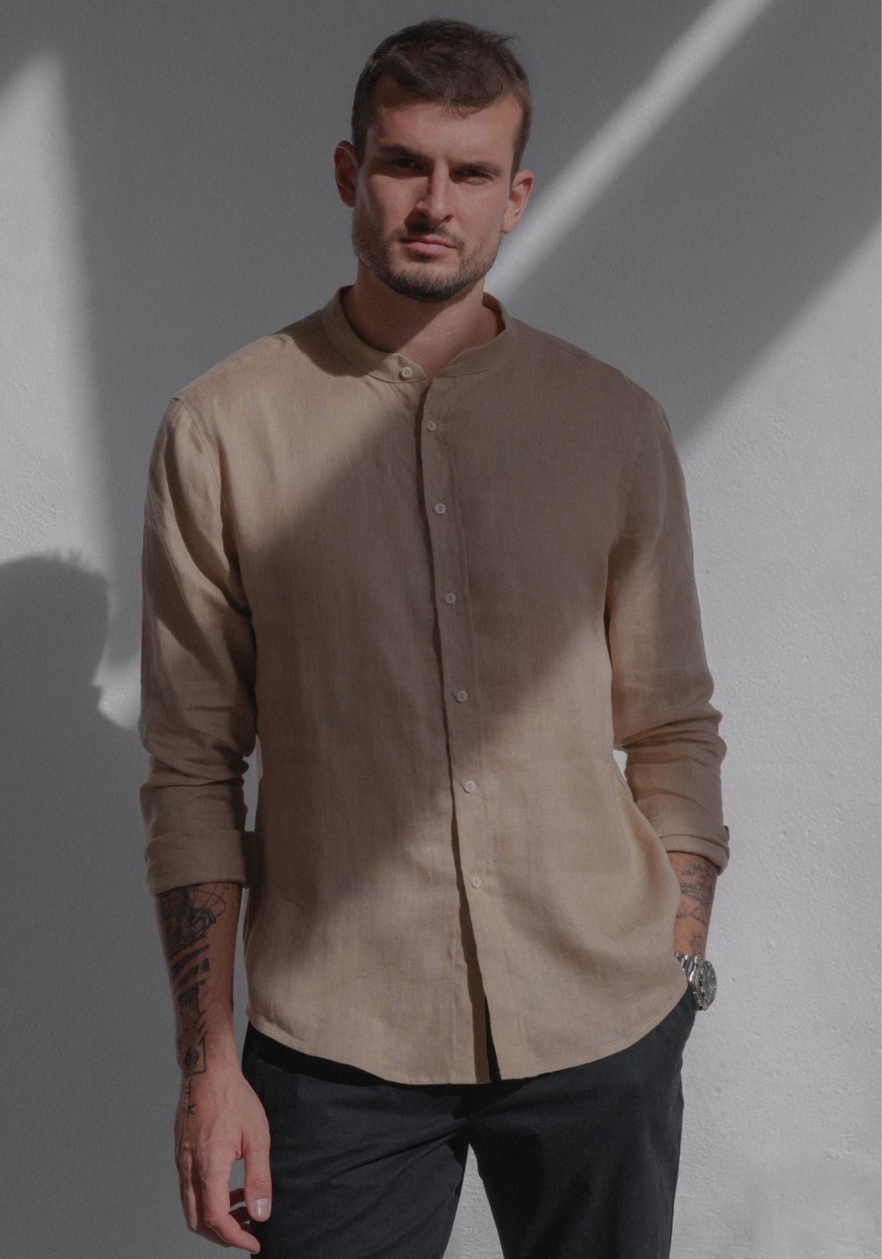 Pánská lněná košile bez límečku - regular fit