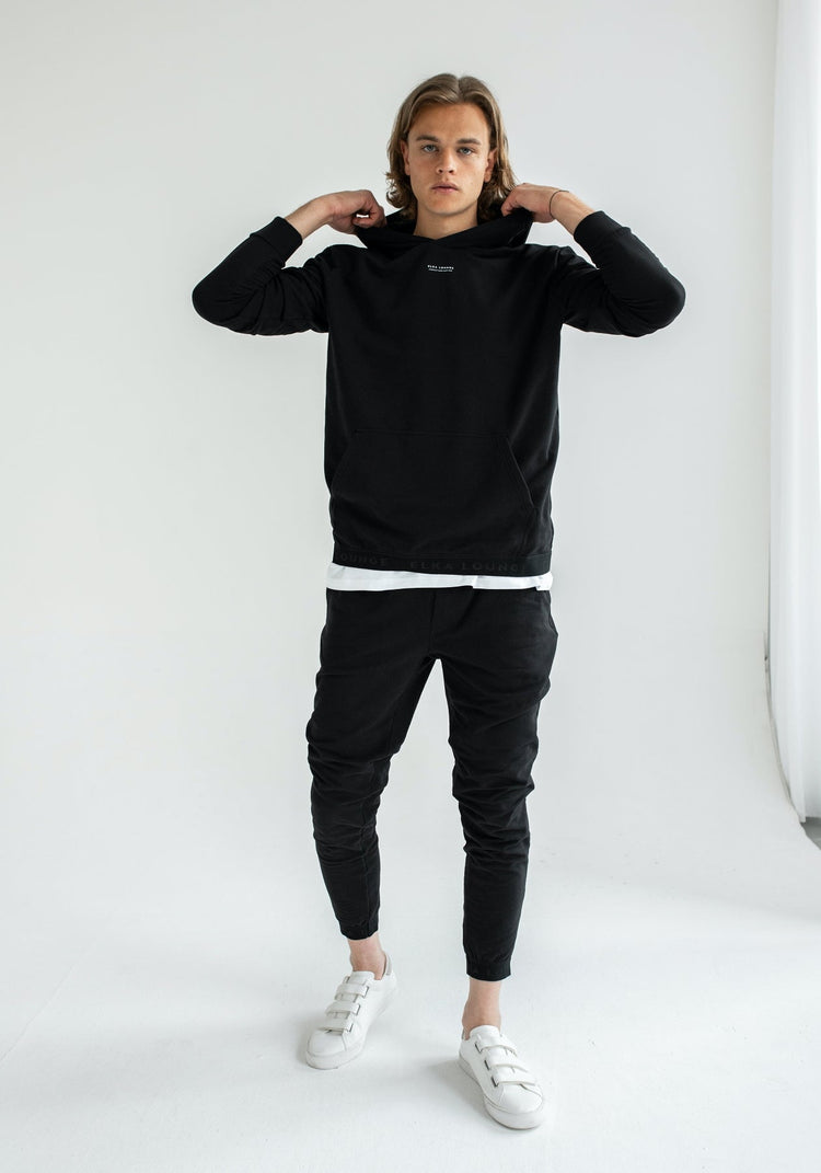 Men sweatpants organic cotton Black lounge brushed - regular