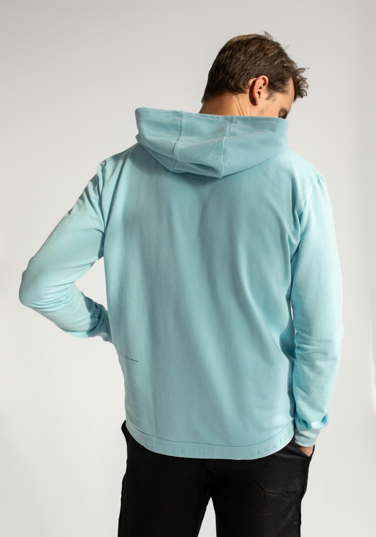 Model Matyas measures 187 cm. He is wearing a size L.
