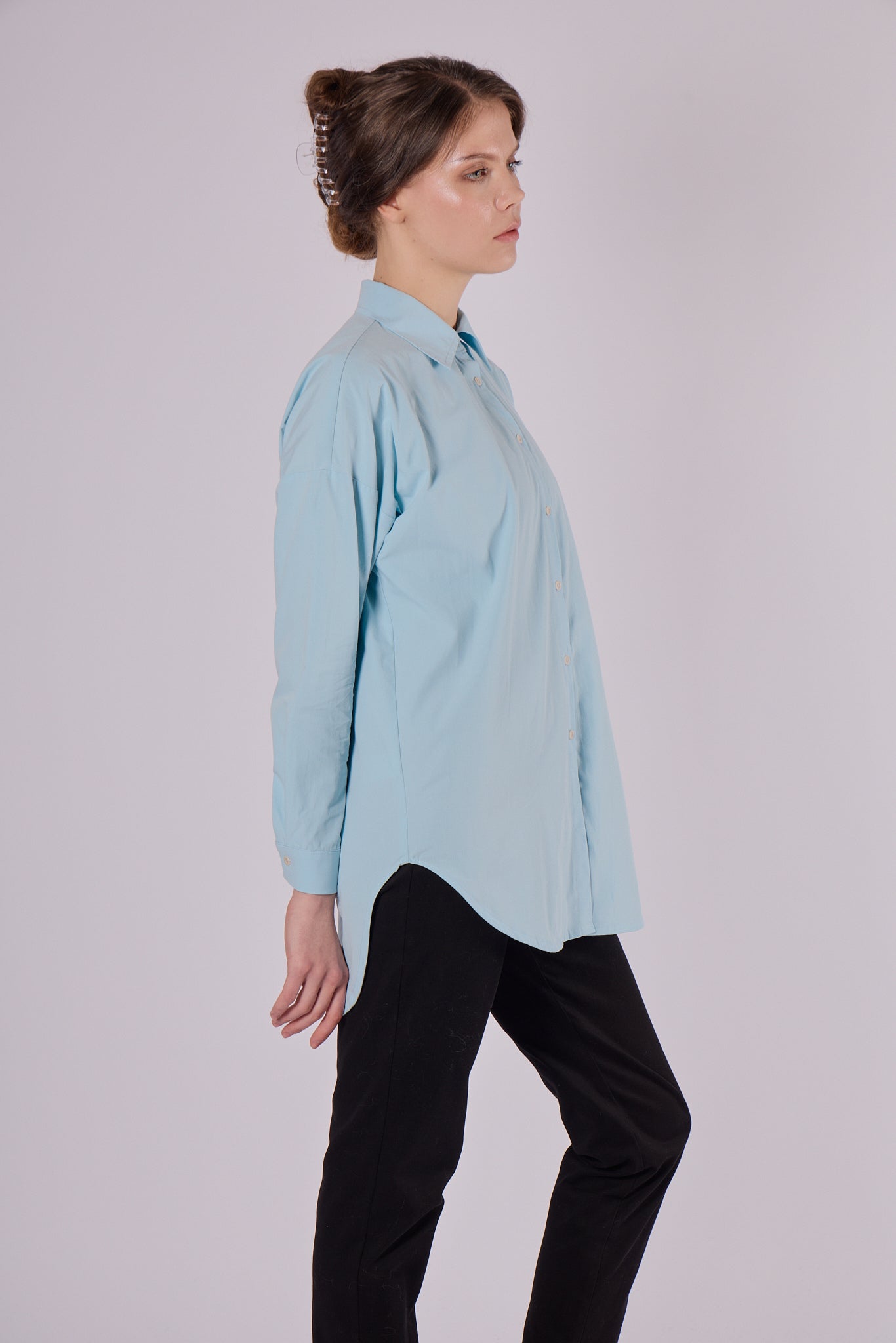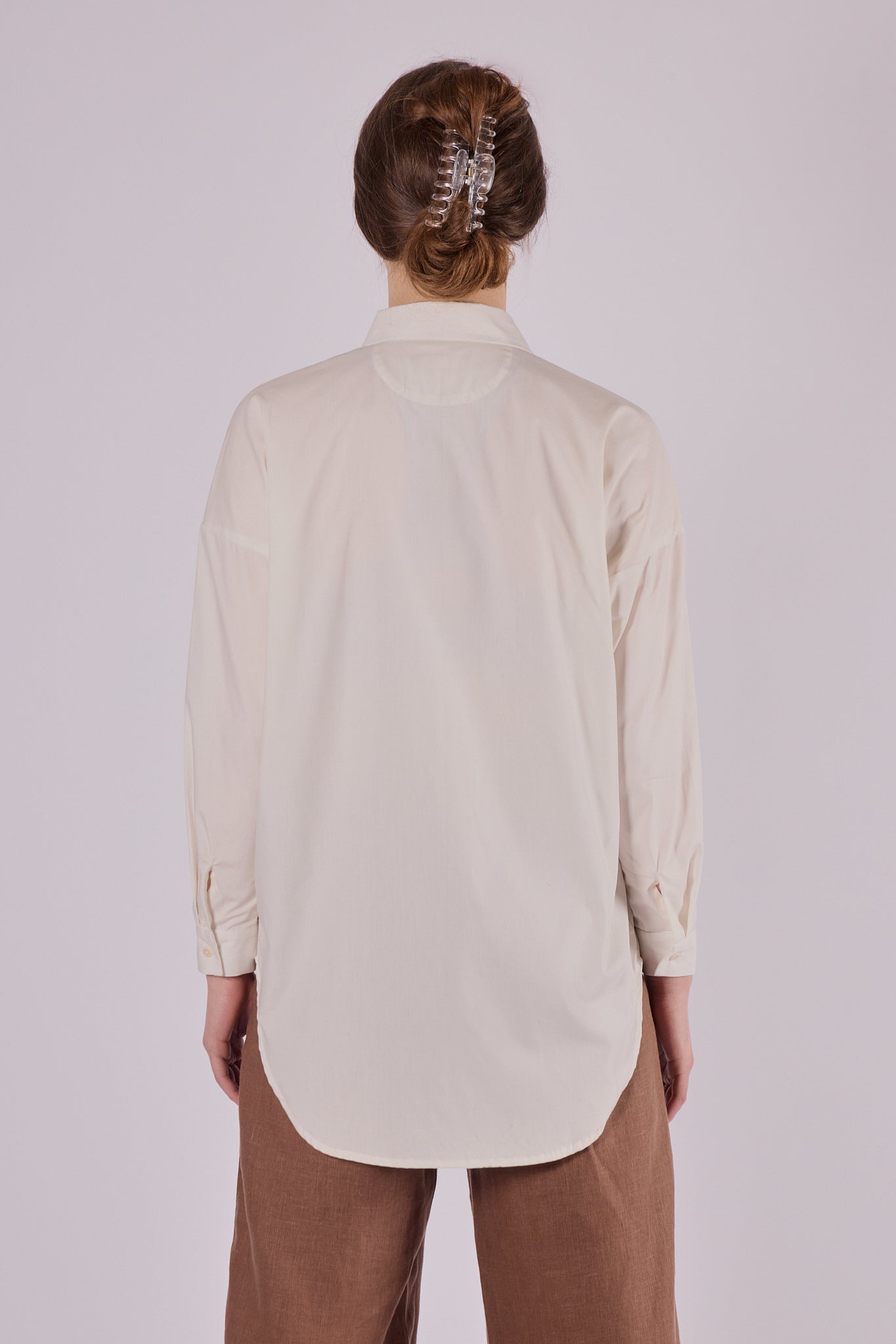 A stylish women’s shirt with a classic collar, crafted from ultra-soft organic cotton. The loose fit offers comfort and freedom of movement while maintaining a refined look. A perfect piece for all seasons – light for summer, layered for winter.