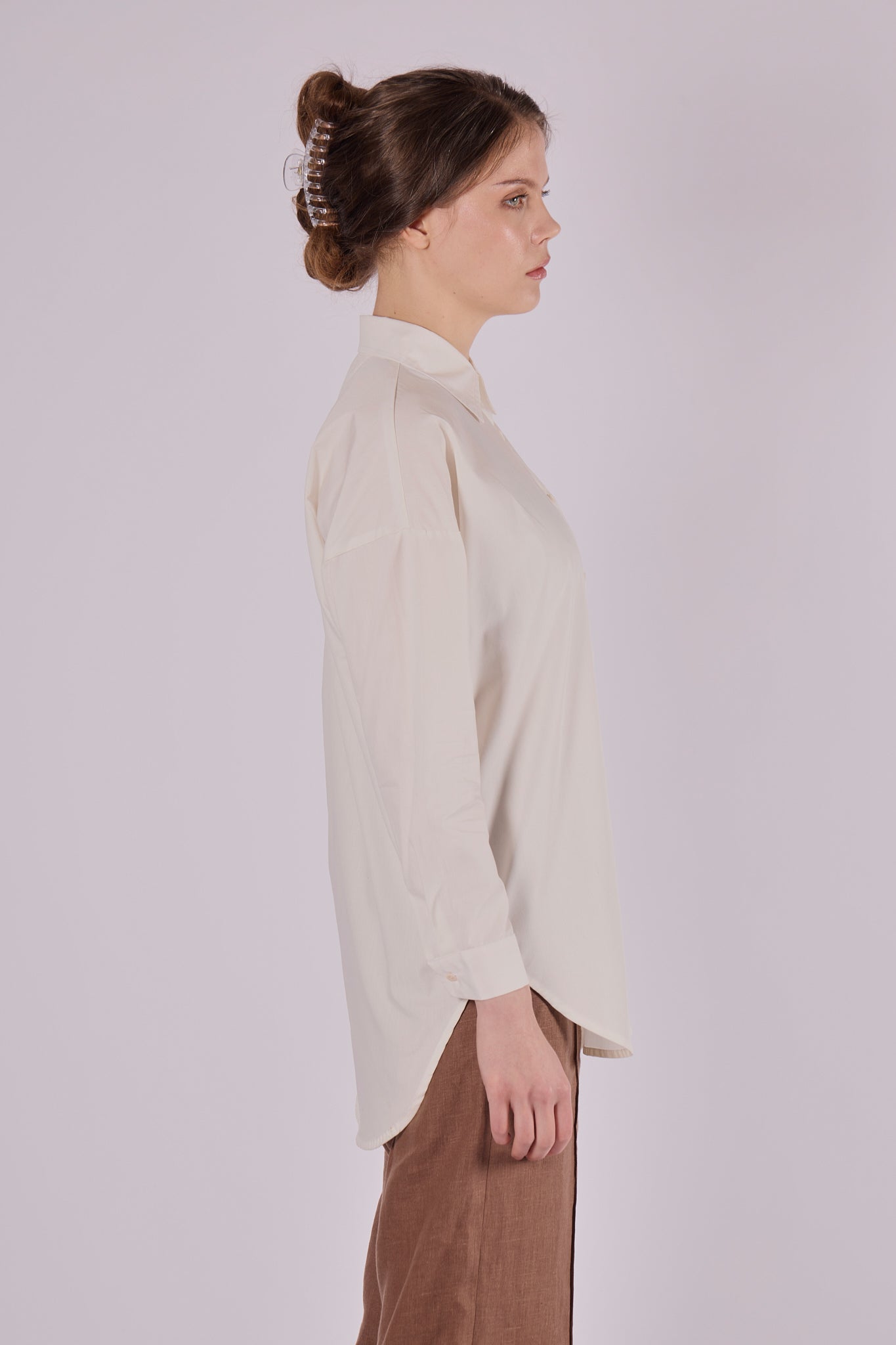 Women's organic cotton shirt with loose fit collar