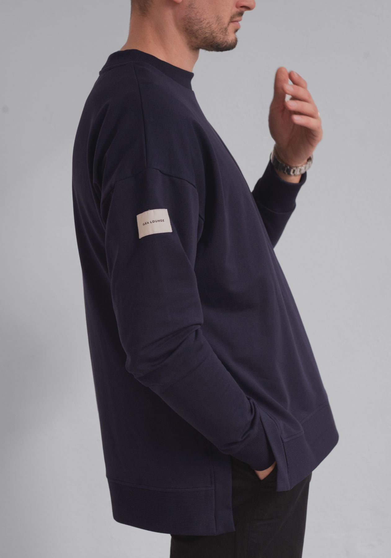 Men Sweatshirt Classic organic cotton z rozcieciami - Loose fit. Wysokiej jakości bluza męska bez kaptura, która dzięki zastosowaniu materiału w 95% z bawełny organicznej jest niezwykle miękka i wygodna dla ciała. Luźny, ale precyzyjnie wykonany krój bluzy zapewnia poczucie doskonałego komfortu przez cały rok i jest podstawą wielu stylizacji. Wyprodukowano w sposób zrównoważony i precyzyjnie w EU.