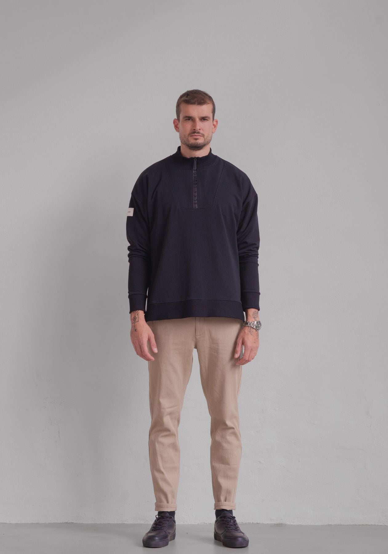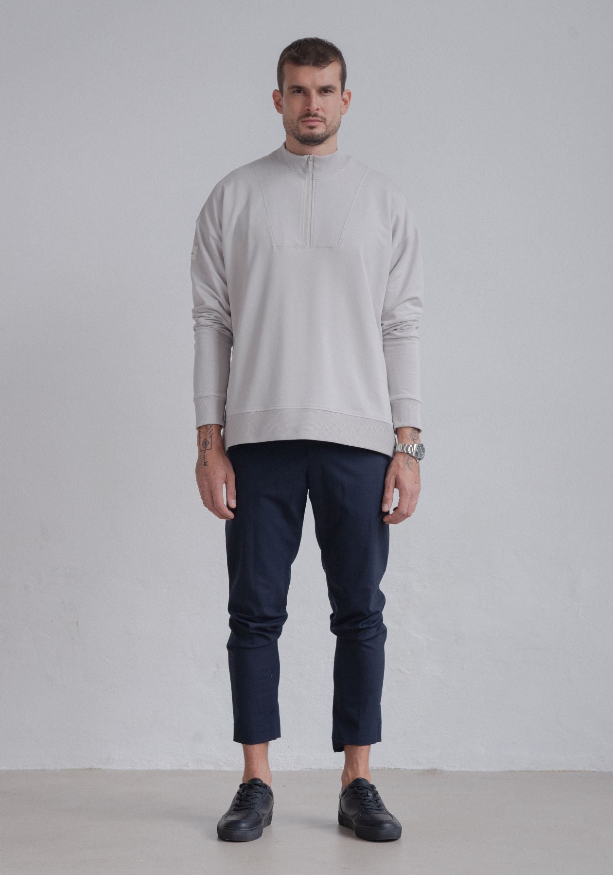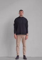 Men Sweatshirt zip-up organic cotton - Loose fit. Wysokiej jakości bluza męska bez kaptura, która dzięki zastosowaniu materiału w 95% z bawełny organicznej jest niezwykle miękka i wygodna dla ciała. Luźny, ale precyzyjnie wykonany krój bluzy zapewnia poczucie doskonałego komfortu przez cały rok i jest podstawą wielu stylizacji. Wyprodukowano w sposób zrównoważony i precyzyjnie w EU.