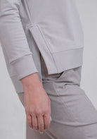 Wygodna i stylowa bluza damska z delikatnym ściągaczem wokół szyi i bocznymi rozcięciami. Wykonana w 95% z nieczesanej bawełny organicznej i w 5% z elastanu – wyjątkowo miękka, oddychająca i przyjemna w dotyku. Krój z krótszym przodem optycznie wydłuża sylwetkę i gwarantuje komfort przez cały dzień.