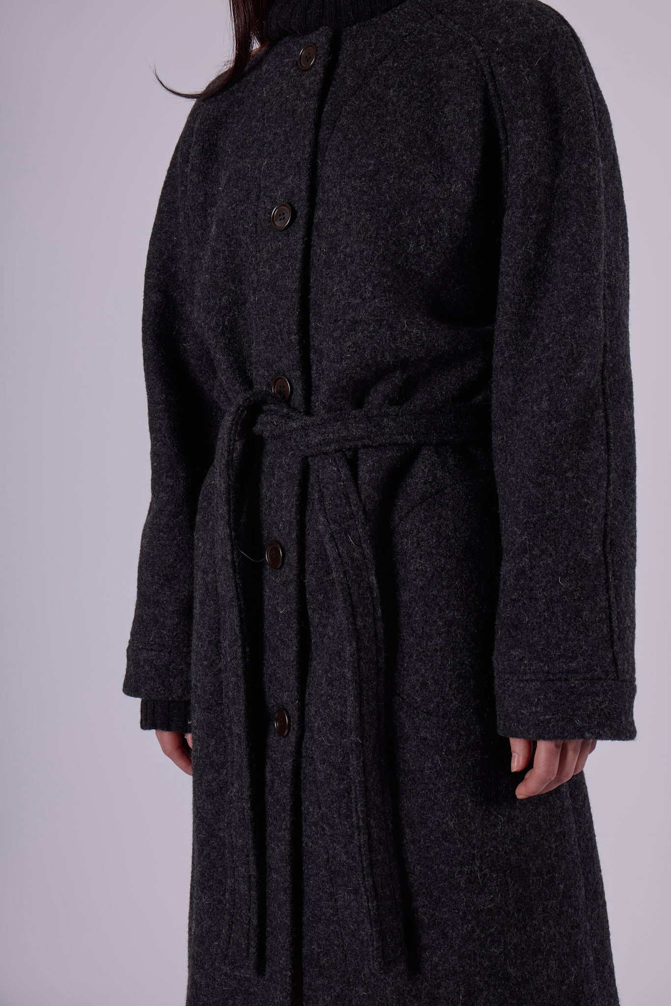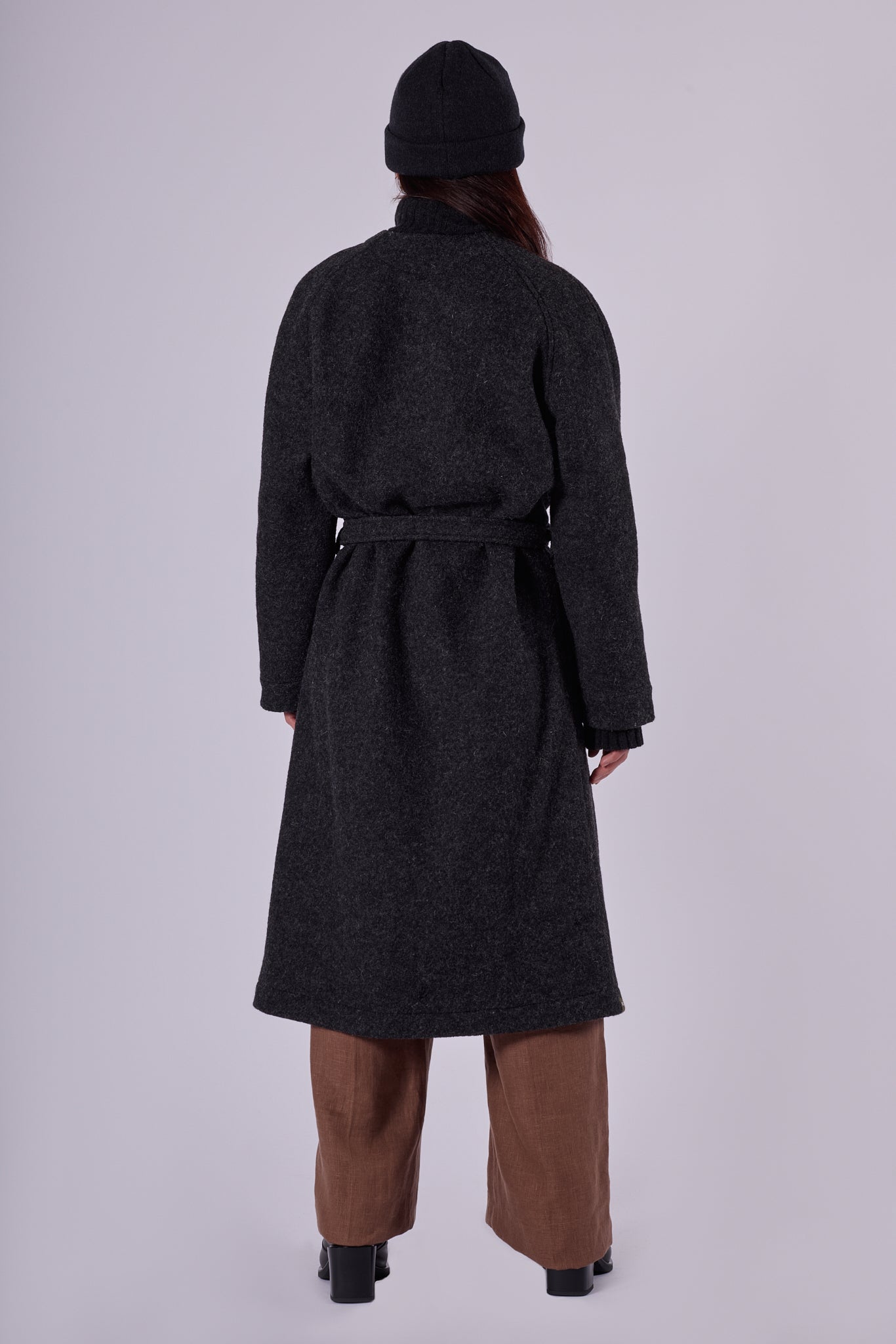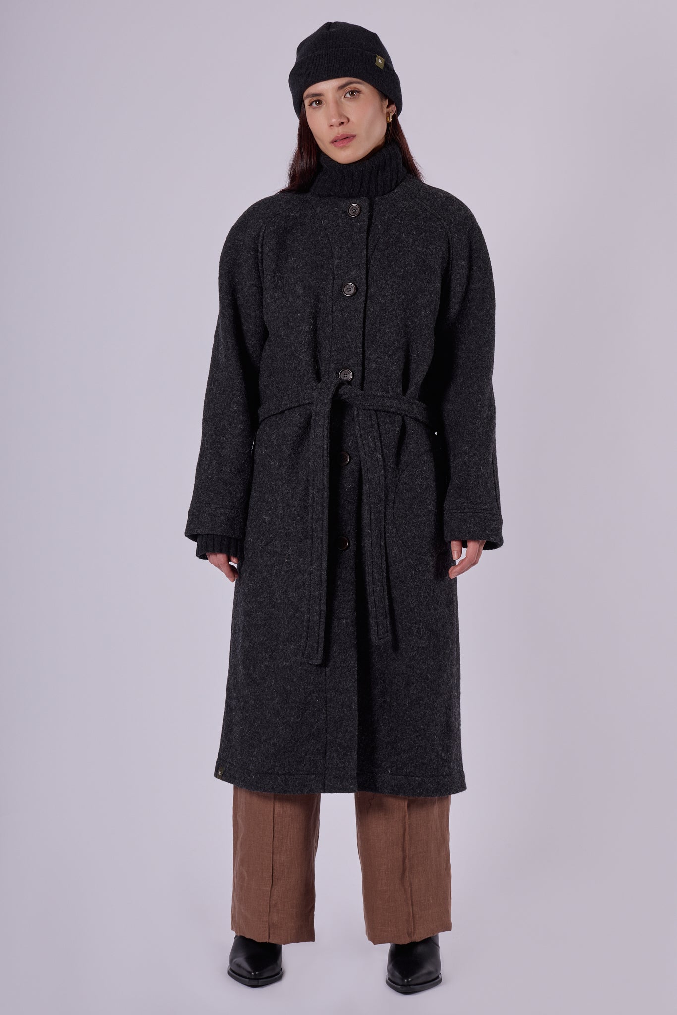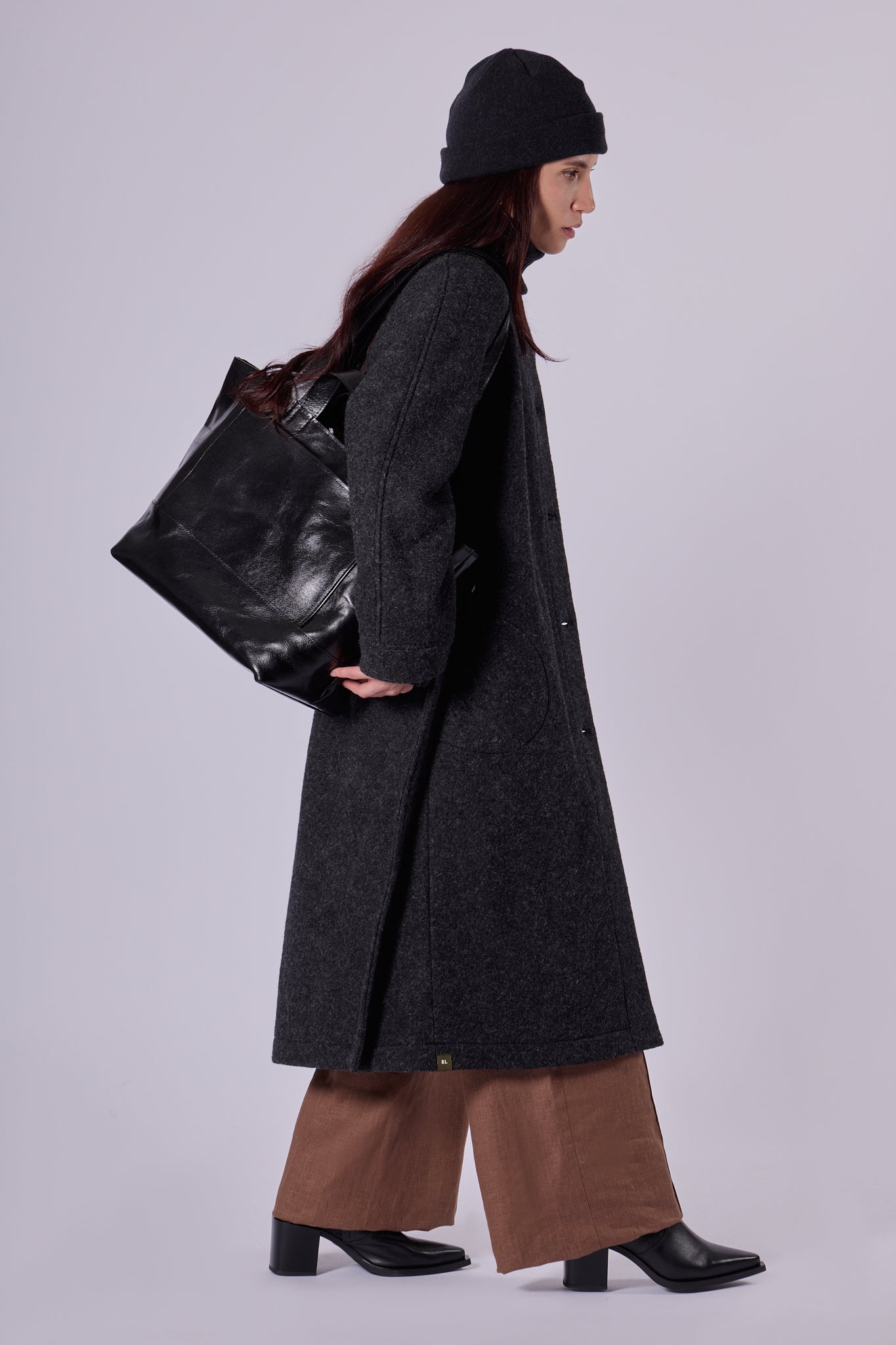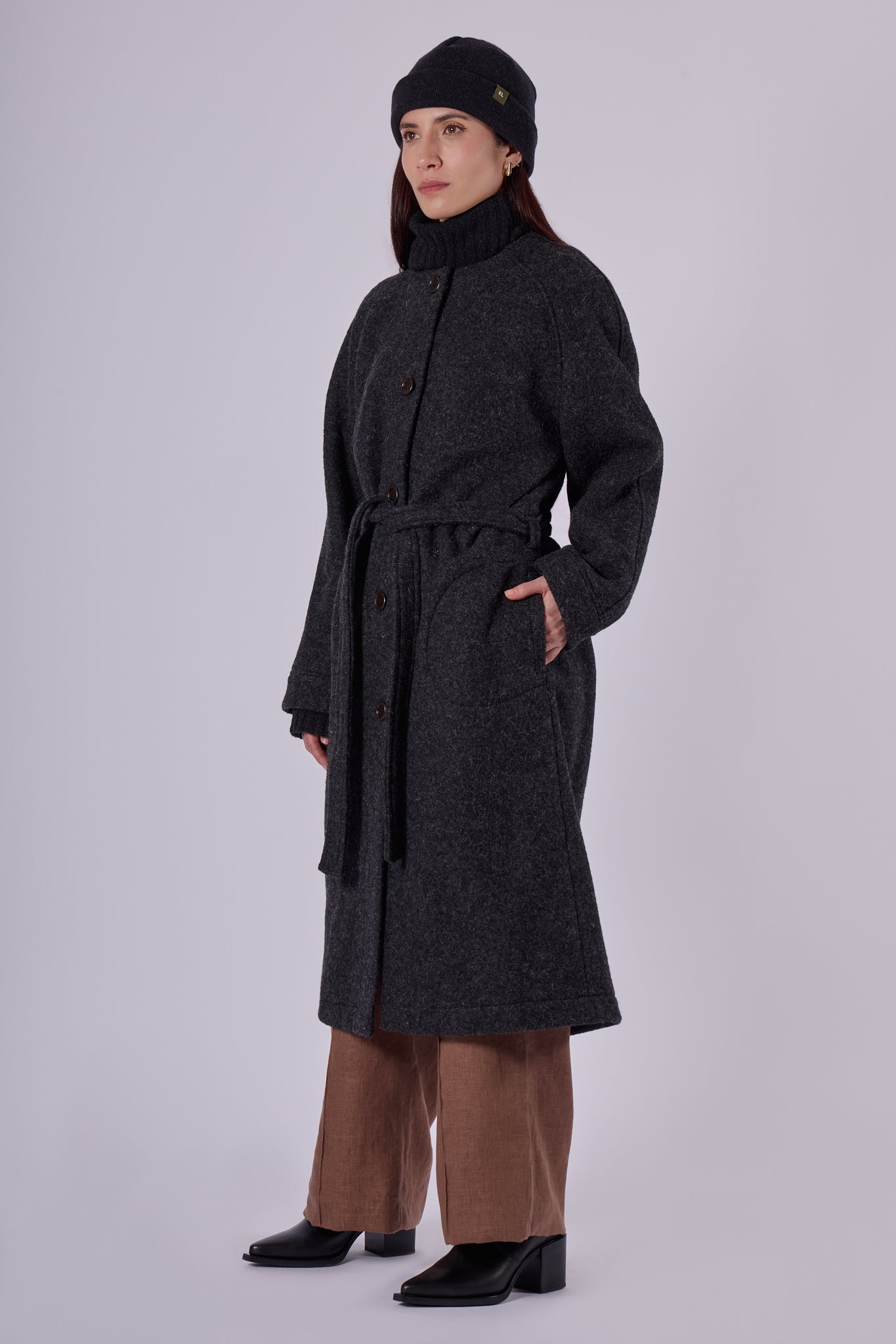 Damski wełniany długi płaszcz Loose fit – Dark gray