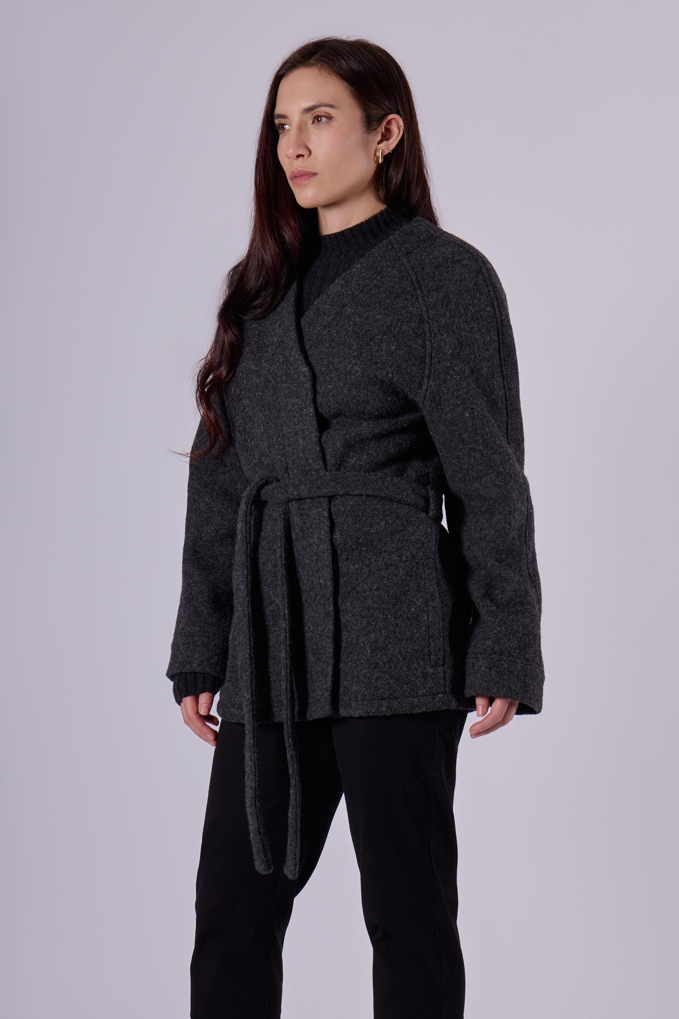 Damski wełniany płaszcz Loose fit – Dark gray