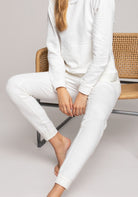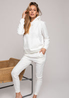 Women Spodnie dresowe bawełna organiczna Offwhite brushed