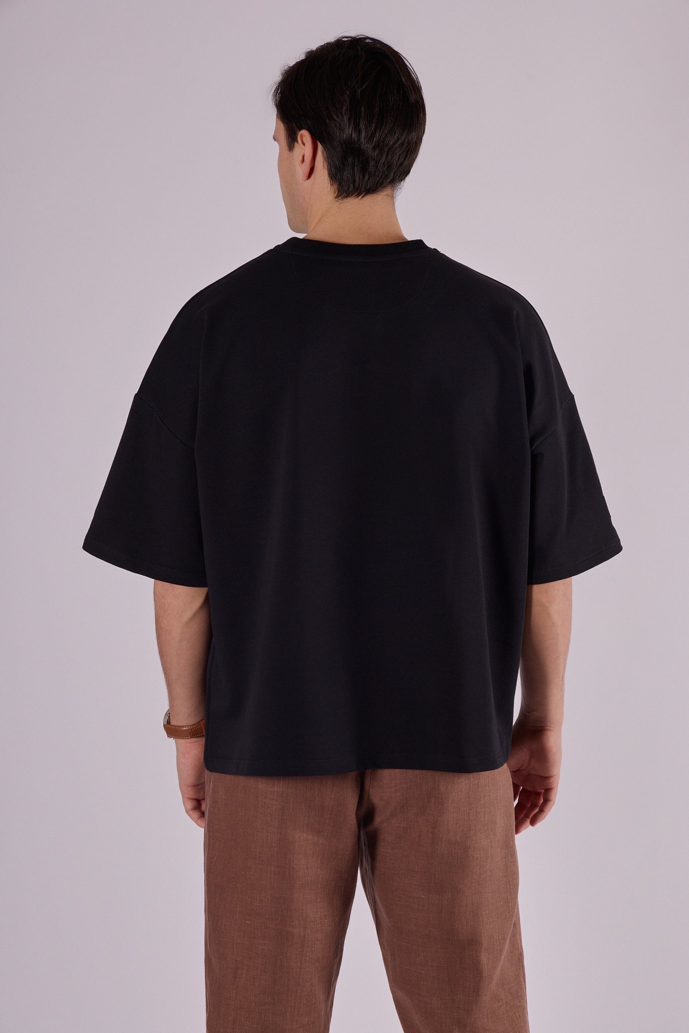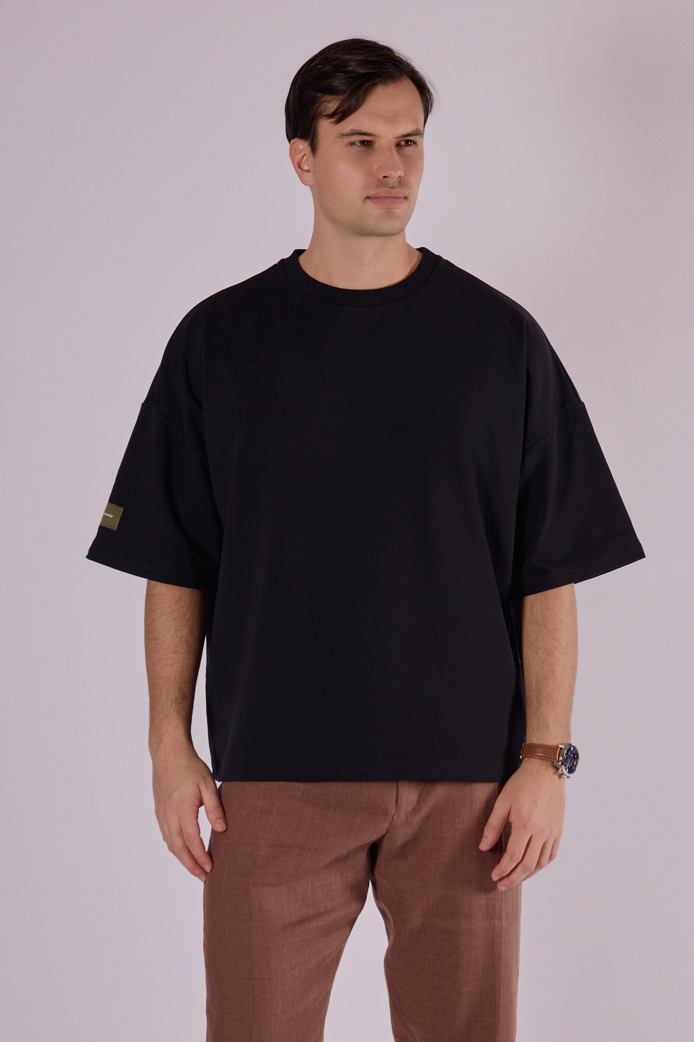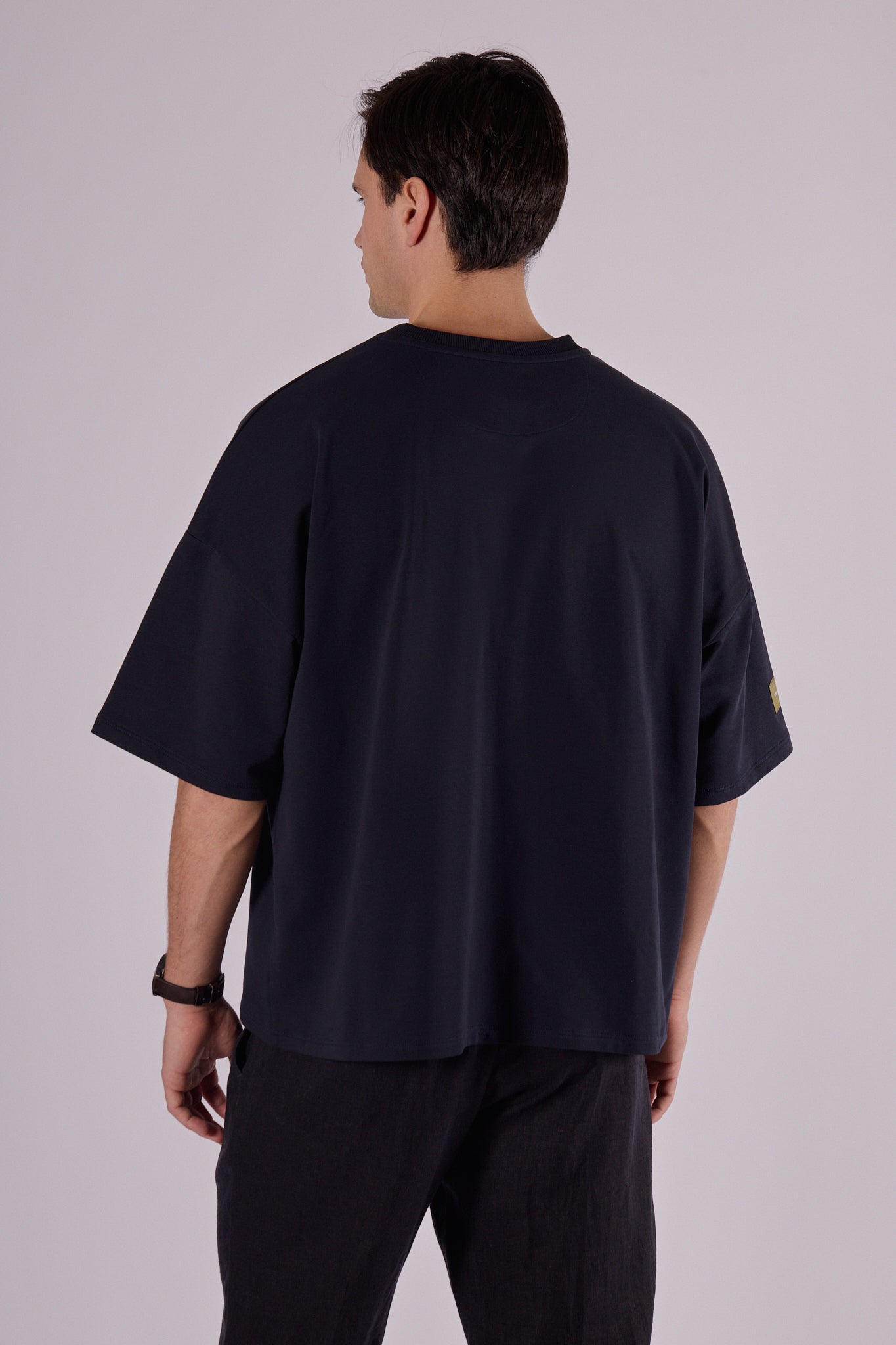 Krój Loose fit zapewnia swobodę ruchu i komfort przez cały dzień. Dzięki wyższej gramaturze materiał pięknie trzyma kształt i oprócz casualowego stylu łatwo komponuje się w bardziej formalny strój. Doskonale pasuje do spodni dresowych i bluzy z tej samej kolekcji – razem tworzą uniwersalny i ponadczasowy zestaw.