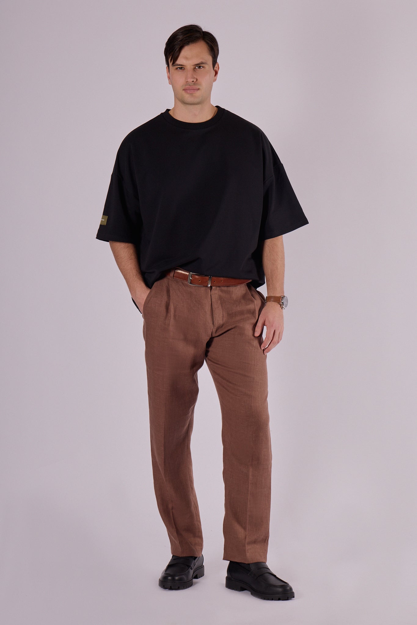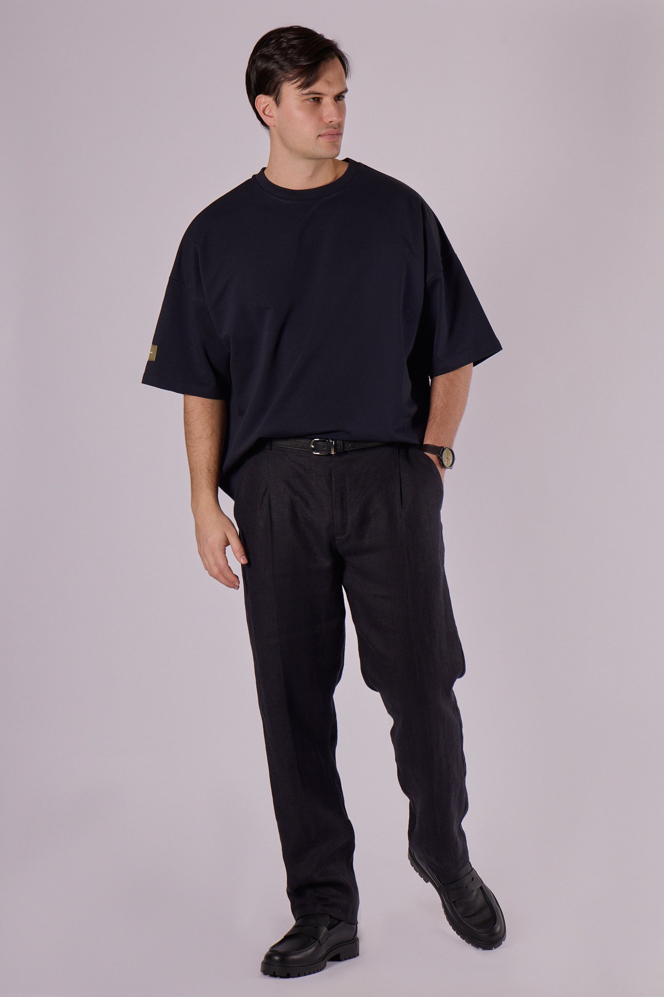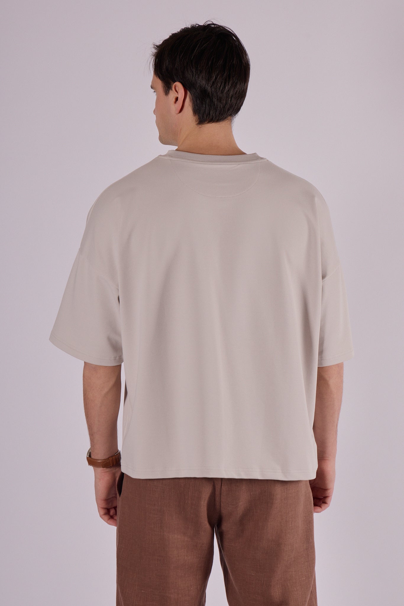 Krój Loose fit zapewnia swobodę ruchu i komfort przez cały dzień. Dzięki wyższej gramaturze materiał pięknie trzyma kształt i oprócz casualowego stylu łatwo komponuje się w bardziej formalny strój. Doskonale pasuje do spodni dresowych i bluzy z tej samej kolekcji – razem tworzą uniwersalny i ponadczasowy zestaw.