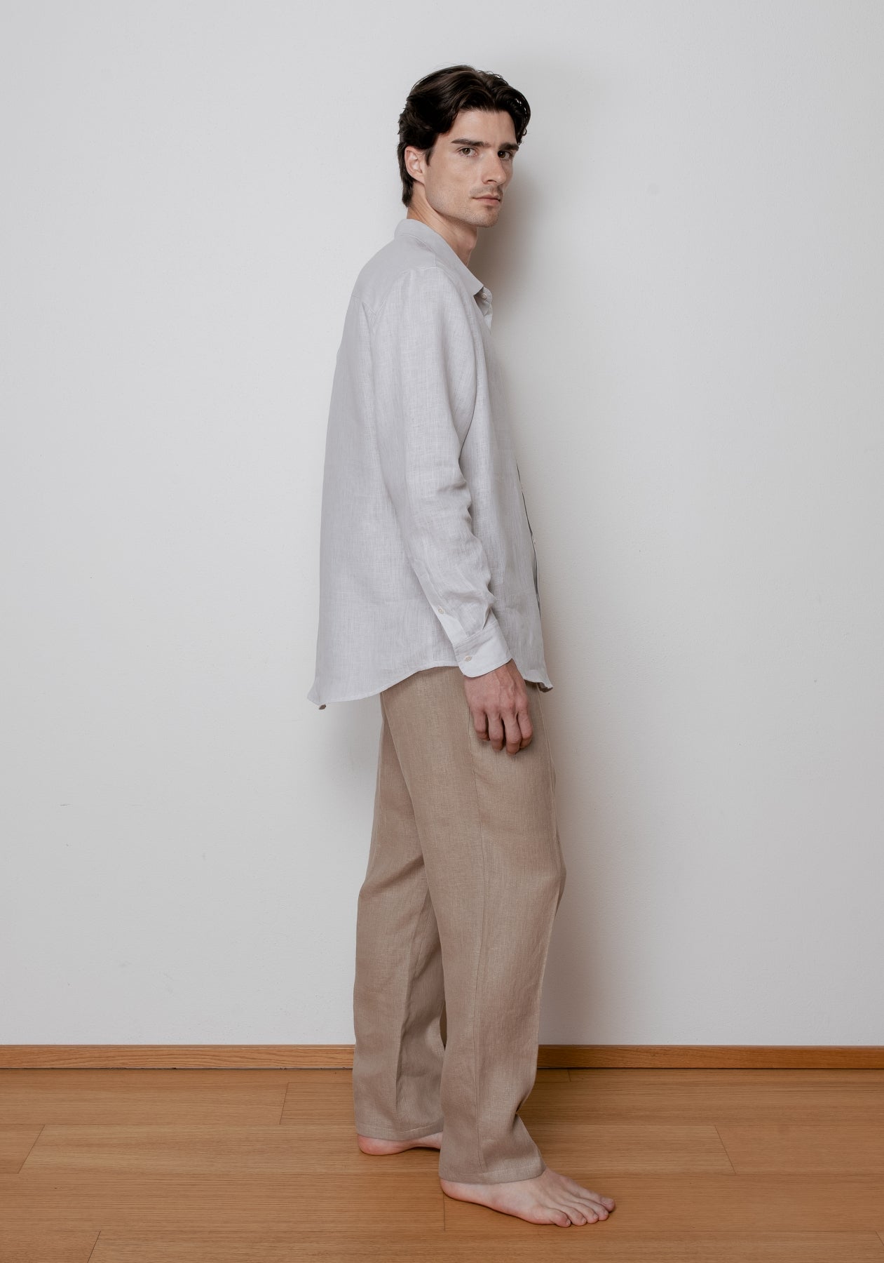 Koszula lniana męska z kołnierzykiem - Pearl gray