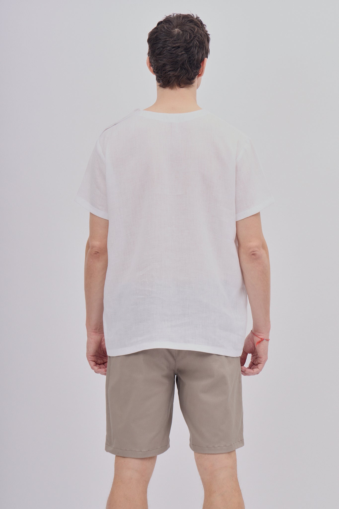 Męska koszulka z naturalnego lnu (100%) jest niezwykle przyjemna w dotyku dzięki zmiękczającej obróbce tkaniny. Klasyczny krój regular odpowiada standardowym rozmiarom, a przód i tył mają równą długość. Zapięcie na guziki na ramieniu dodaje charakteru. Neutralne kolory ułatwiają tworzenie zarówno sportowych, jak i bardziej eleganckich stylizacji. Starannie i odpowiedzialnie uszyta w Czechach. Po praniu materiał staje się jeszcze bardziej miękki.