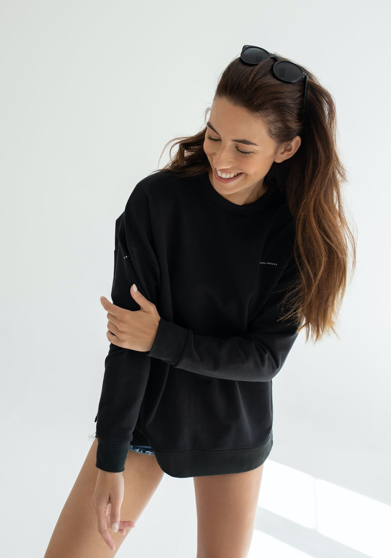 Dámská mikina bez kapuce z biobavlny Black brushed - Oversized
