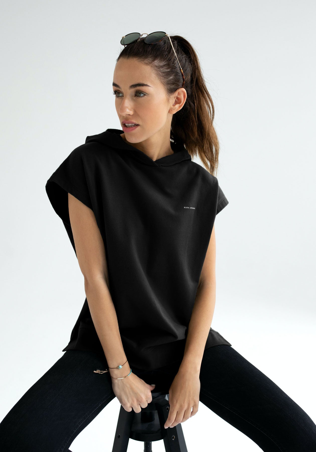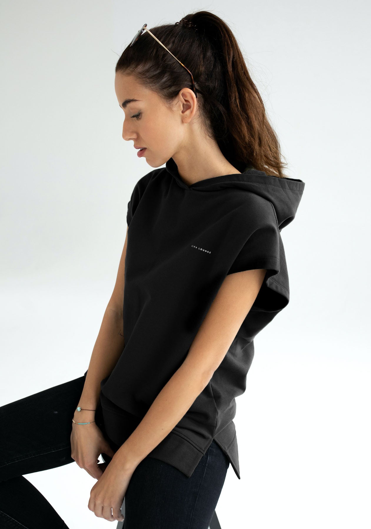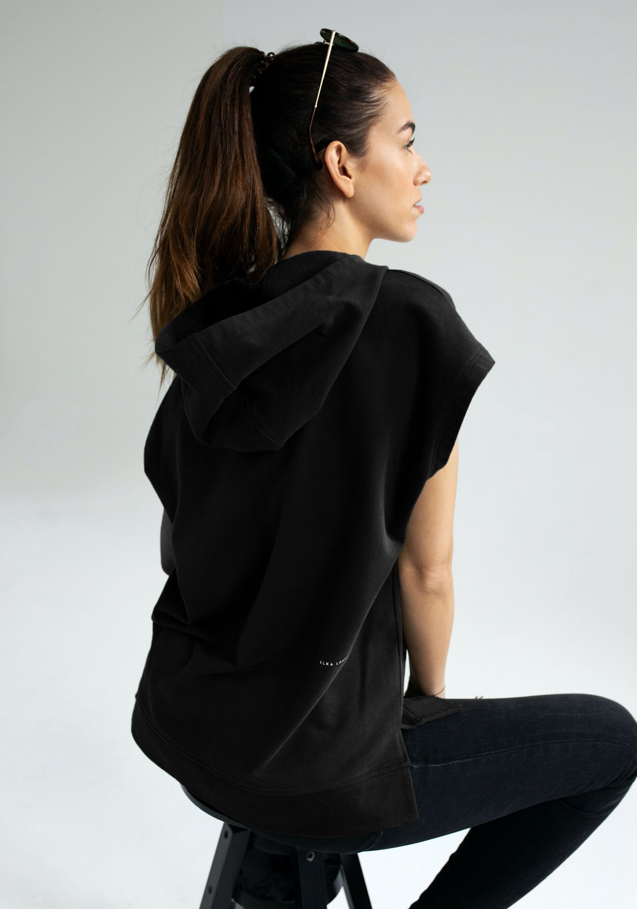 Dámská Mikina bez rukávu / vesta z biobavlny Black brushed - Oversized