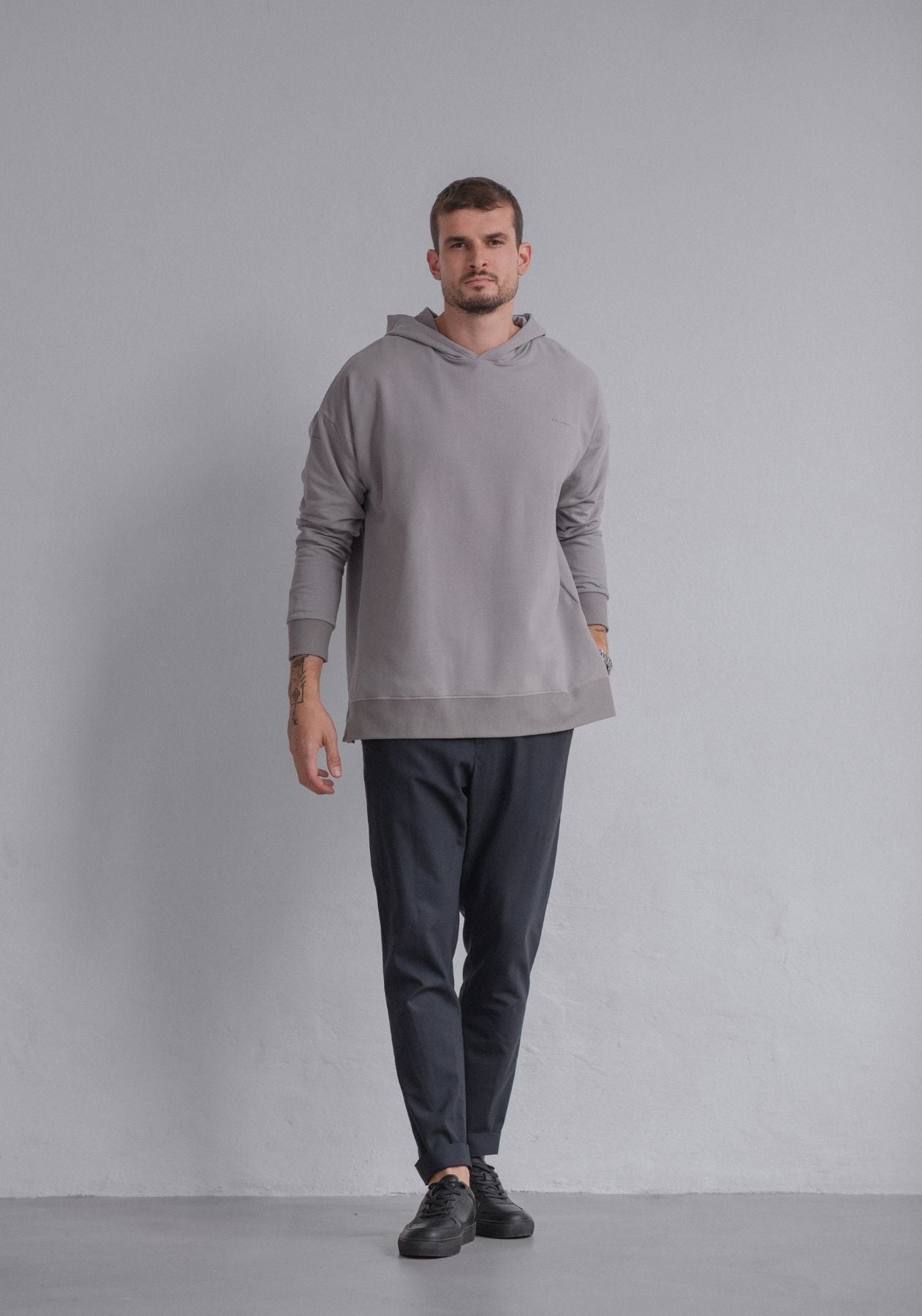 Pánská mikina s kapucí z biobavlny Light gray brushed - Oversized