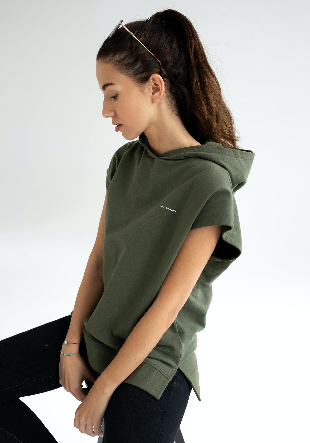 Dámska mikina bez rukavu / vesta z biobavlny Moss green brushed - Oversized
