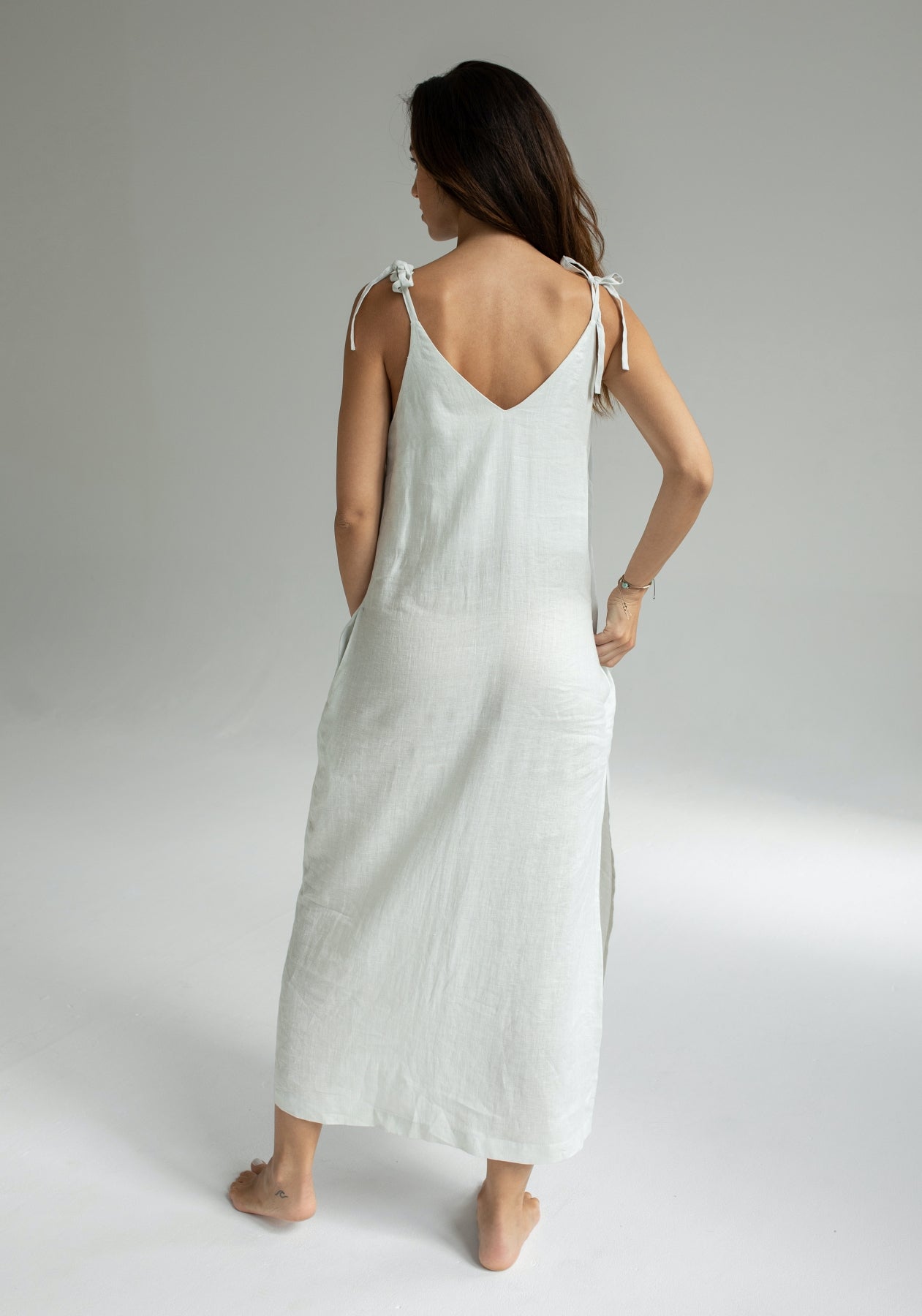 Dámske ľanové šaty long loose fit Pearl gray