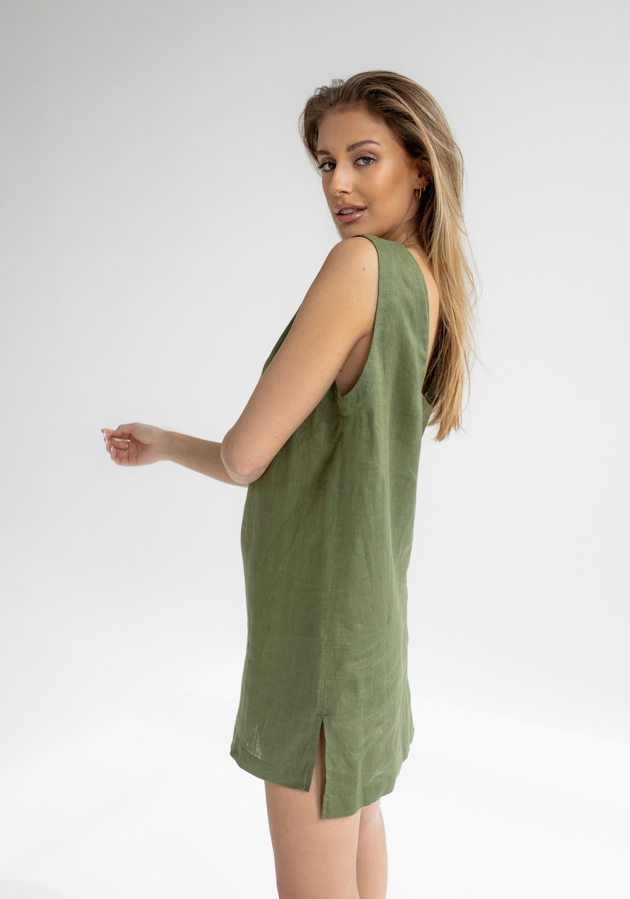 Dámske lánové šaty s otvorenými chrbtom a bočnými rázporkami.