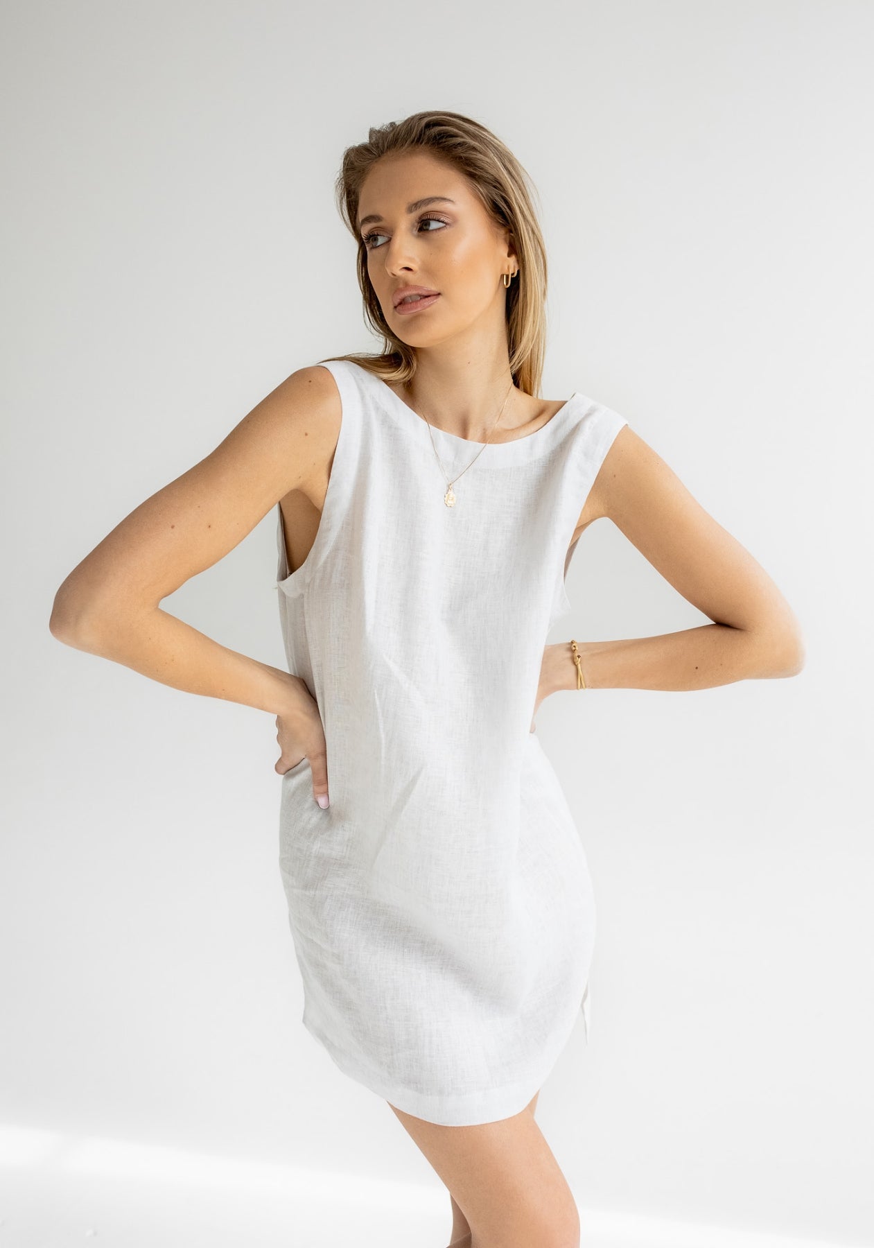 Dámske lánové šaty s otvorenými chrbtom a bočnými rázporkami.