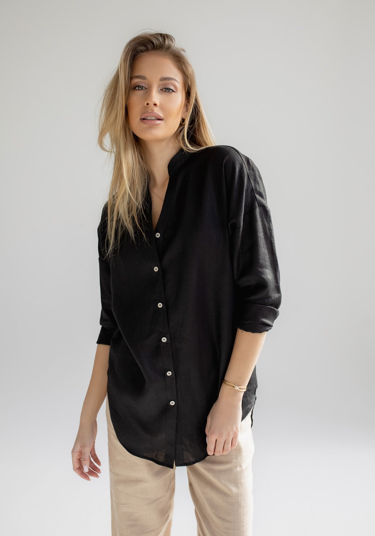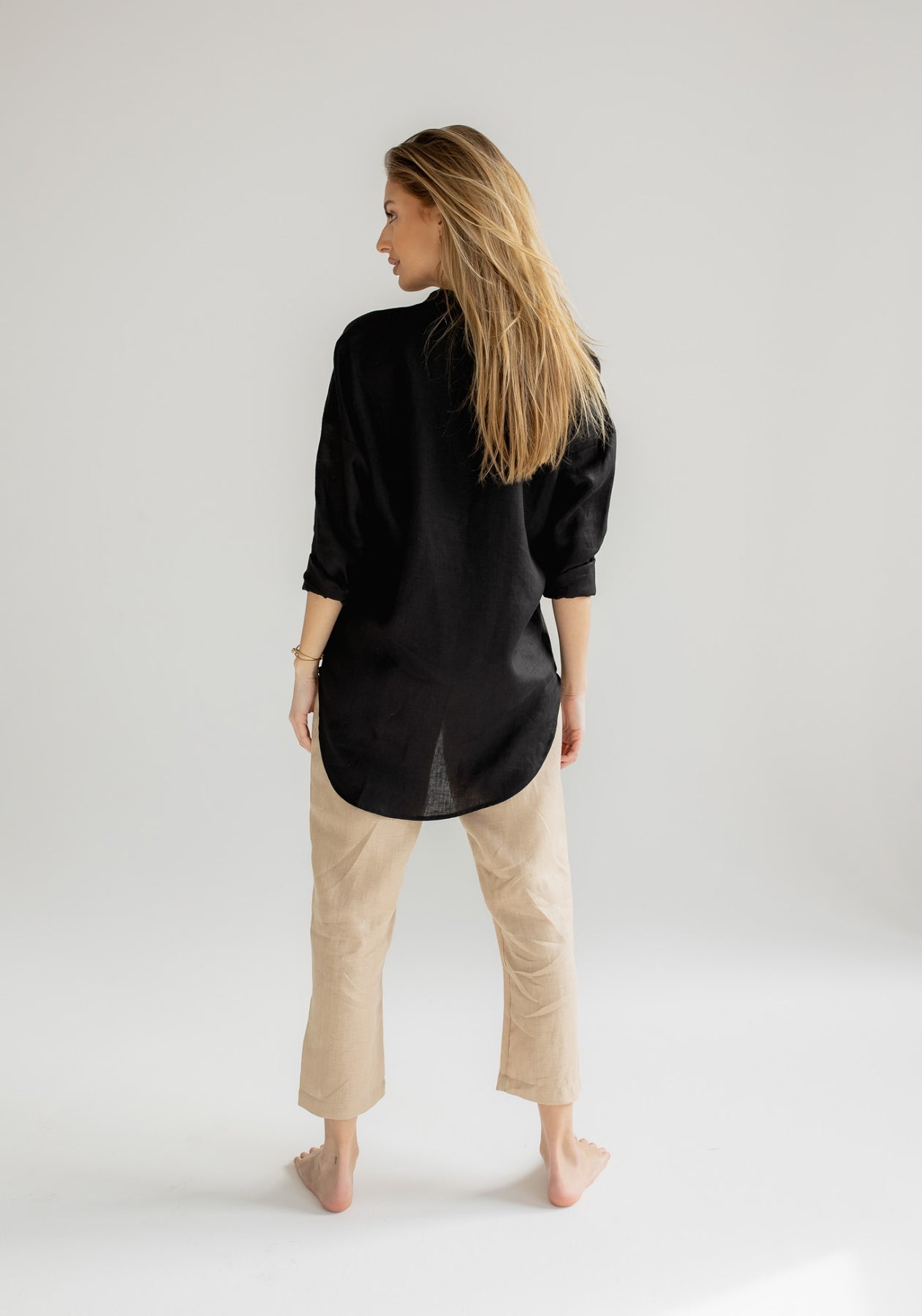 Dámska ľanová košeľa loose fit Black (Size)