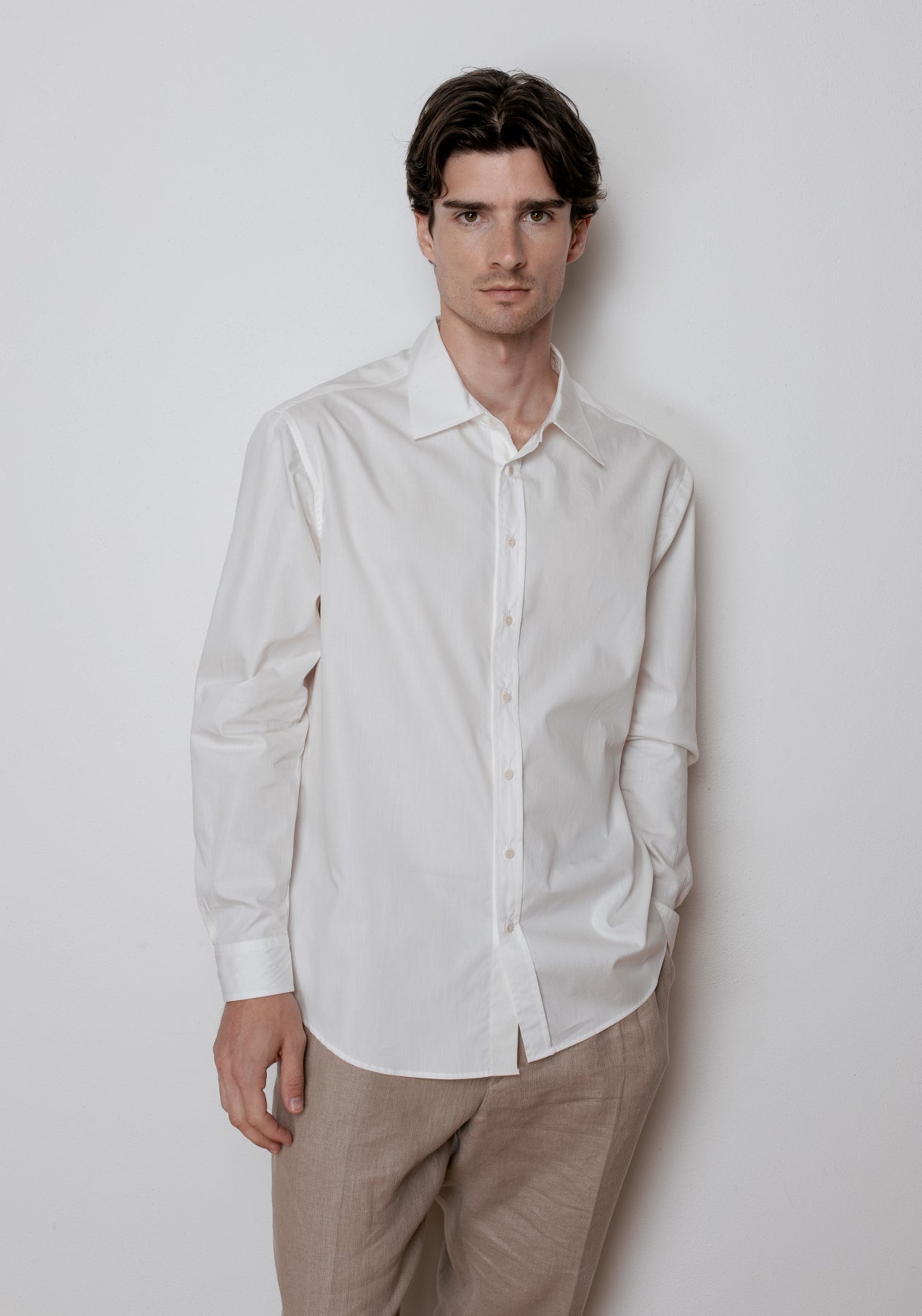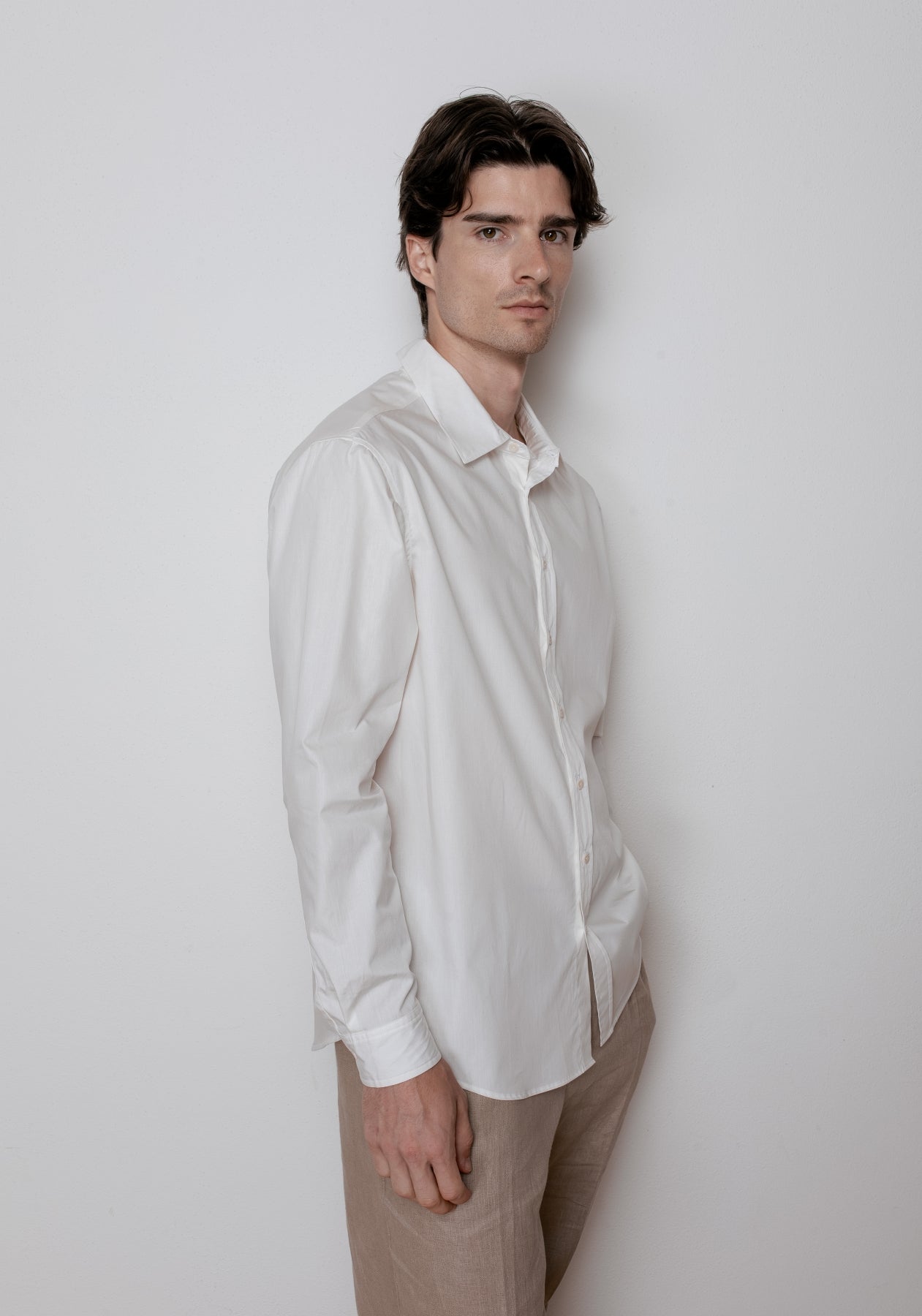 Pánska košeľa s klasickým golierom je ušitá z certifikovanej biobavlny s jemnou úpravou, ktorá je výnimočne príjemná na pokožke. Voľnejší strih (loose fit) ponúka komfort a zároveň pôsobí elegantne. Skvelá voľba na každodenné nosenie aj formálne príležitosti.