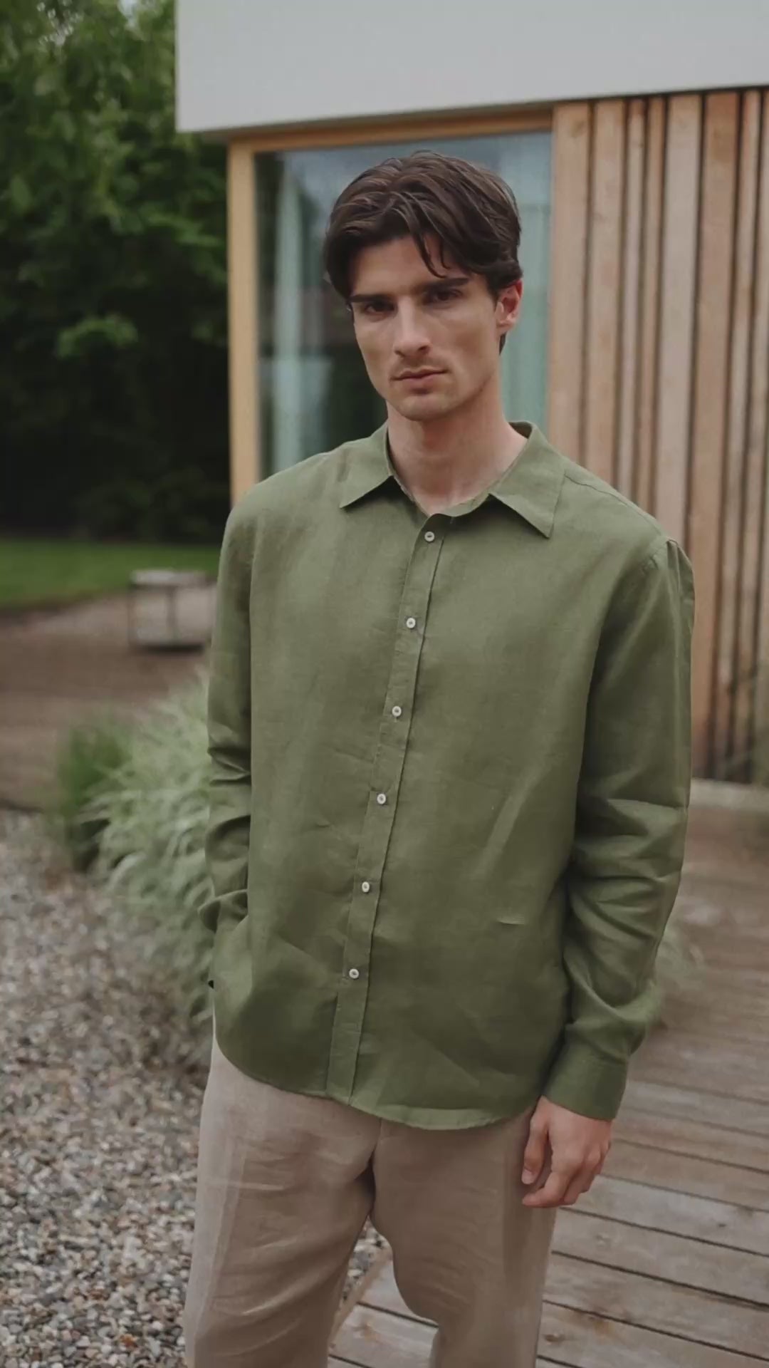 Pánska košeľa s klasickým golierom je ušitá zo 100% prírodného ľanu s jemnou úpravou, vďaka ktorej je mimoriadne príjemná na pokožke. Voľnejší strih (loose fit) zabezpečuje pohodlie a zároveň elegantný vzhľad. Môžete ju nosiť ležérne alebo ako štýlový kúsok do práce. Skvelá do letného aj zimného šatníka.