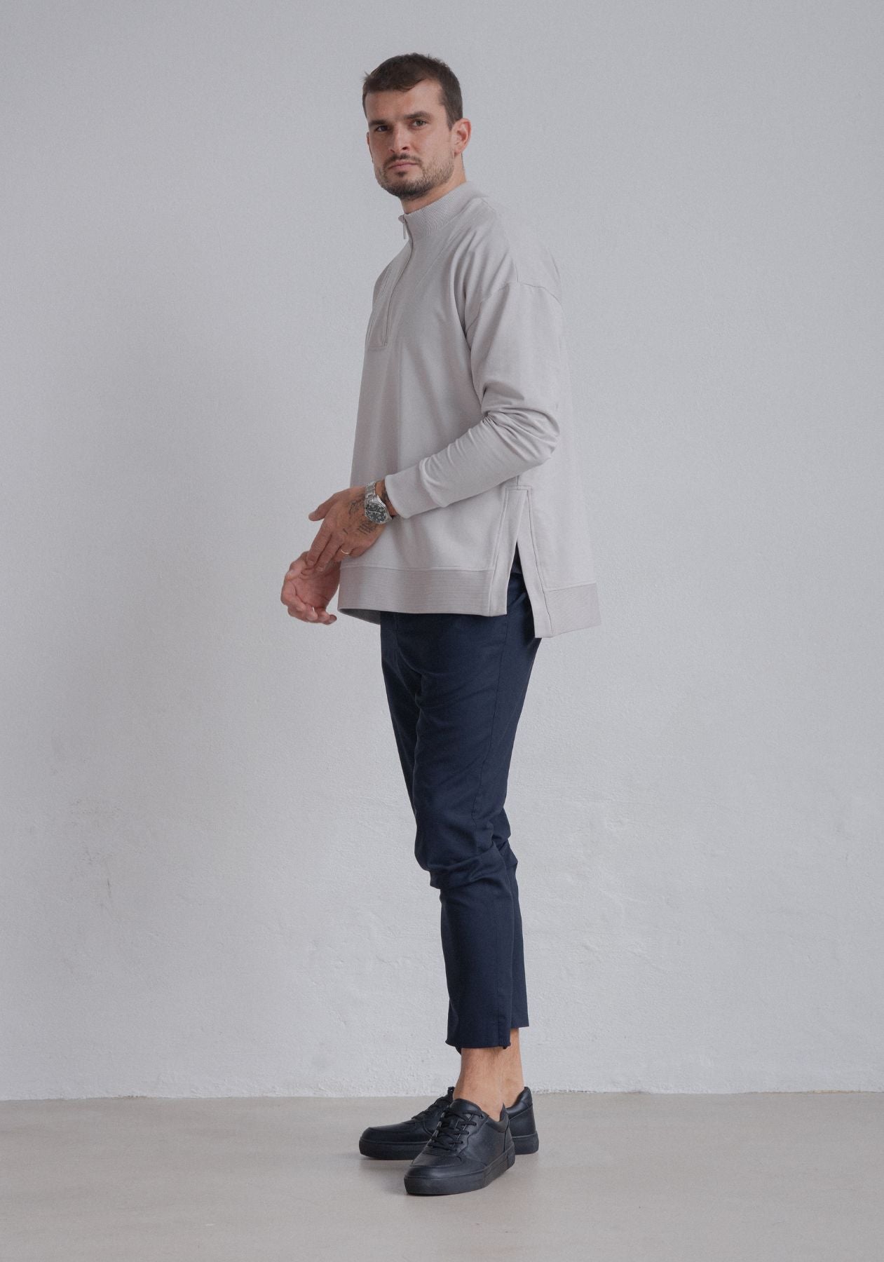 Pánska Mikina zip-up z biobavlny Pearl gray - Loose fit, ktorá je vďaka materiálu z 95% biobavlny neuveriteľne jemná a príjemná na tele. Uvoľnený, ale precízne spracovaný strih mikiny zaistí pocit perfektného pohodlia po celý rok a je základom množstva outfitov. Vyrobené udržateľne a precízne v ČR.