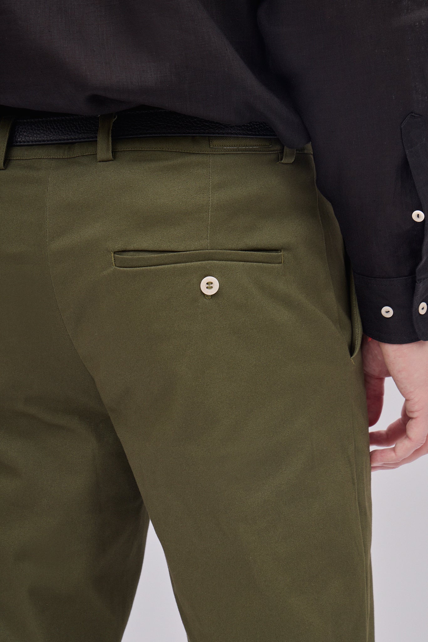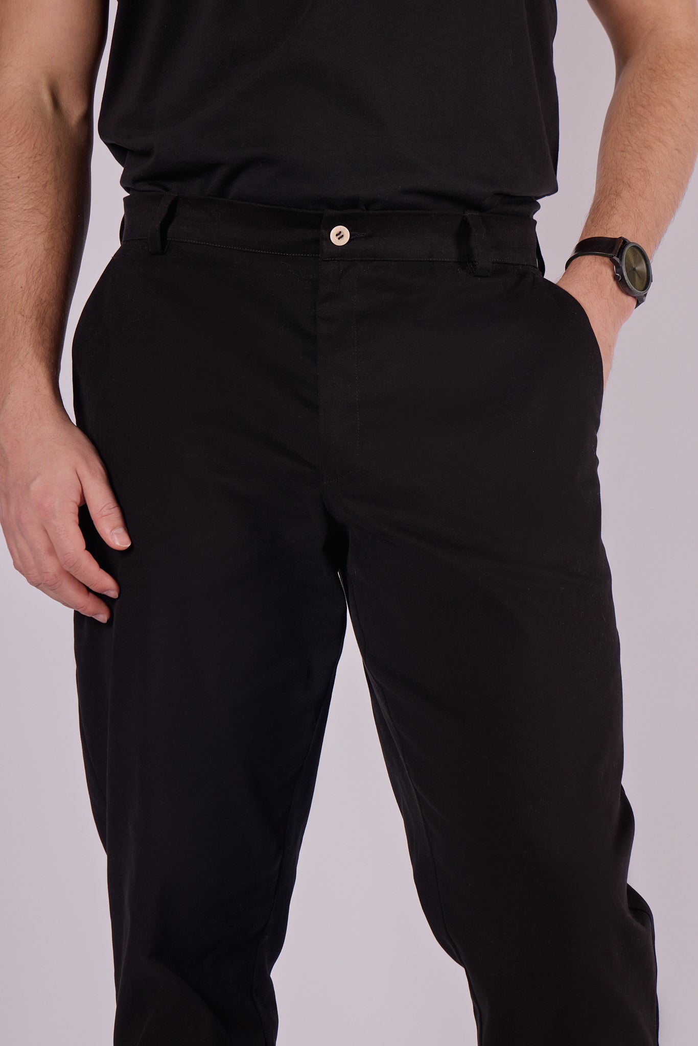Nohavice sú vyrobené z kvalitnej bavlny, ktorá je príjemná na nosenie a zároveň si dobre drží tvar. Pre dokonalé padnutie navyše ponúkame možnosť úpravy na mieru, ktorú si môžete k produktu jednoducho pridať.