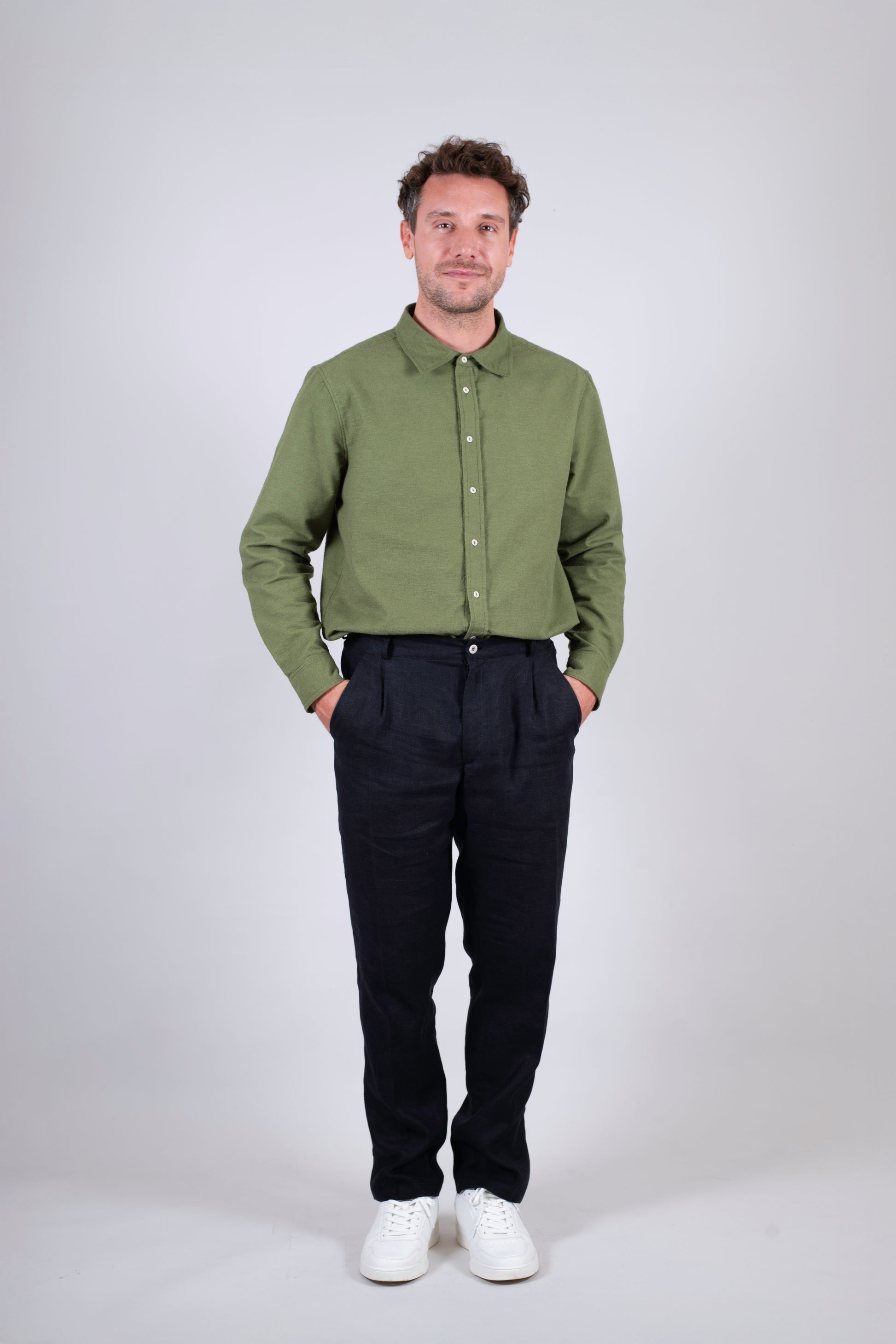 Pánske nohavice zo 100% ľanu v strihu loose-fit sú výnimočne príjemné na tele vďaka zmäkčenej povrchovej úprave. Elastická guma v zadnej časti pásu zabezpečuje pohodlné prispôsobenie, predná časť má zapínanie na gombík a zips. Nohavice sú vybavené pútkami na opasok, vďaka čomu môžete ľahko dosiahnuť formálnejší vzhľad. Precízne a udržateľne vyrobené v Českej republike. Látka strednej gramáže po praní ešte viac zmäkne.