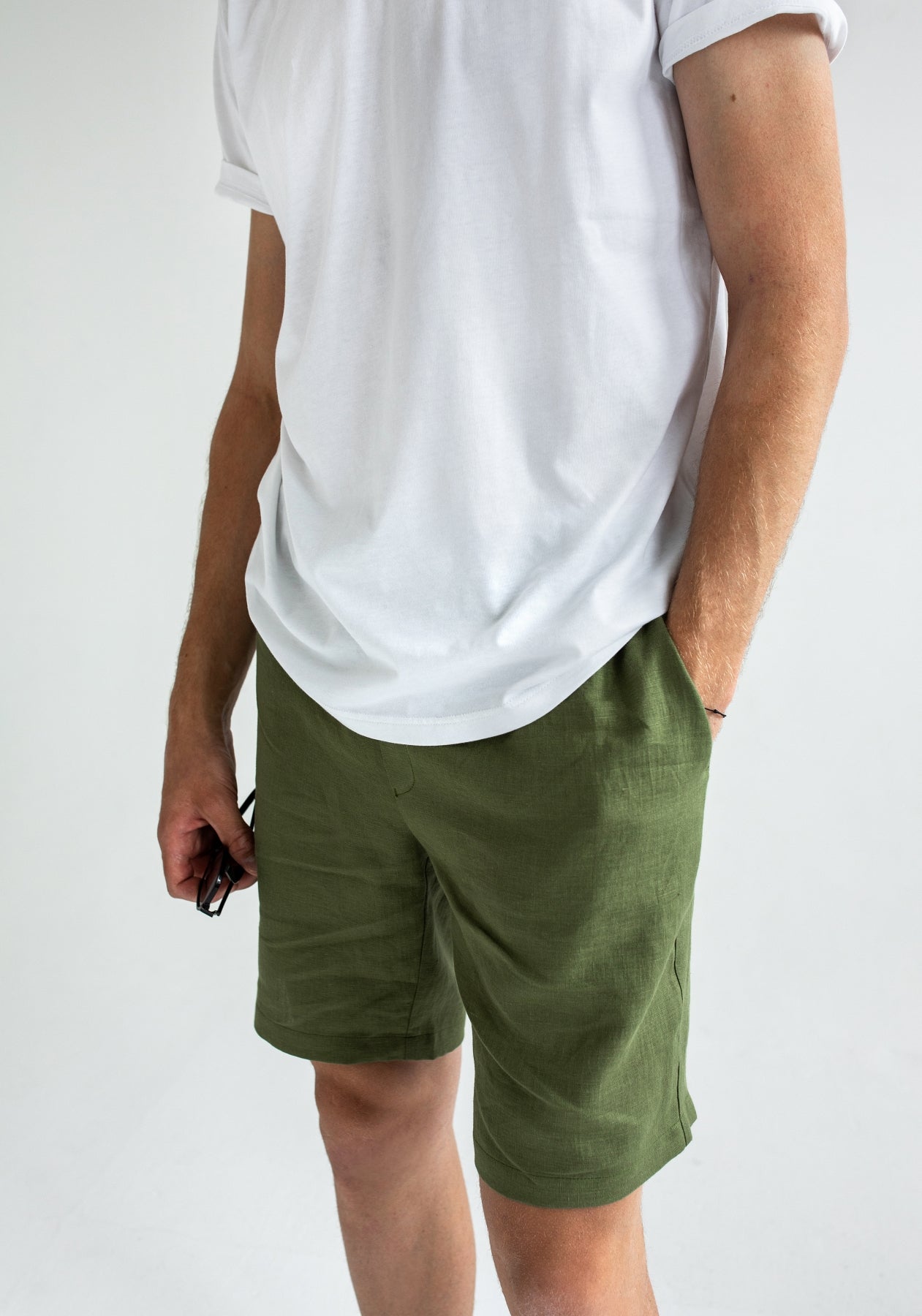 Pánske ľanové šortky, neuveriteľne príjemné na tele vďaka zmäkčujúcej úprave látky. Vyrobené precízne a udržateľne v ČR a SR. Látka po vypratí ešte podstatne zjemní.