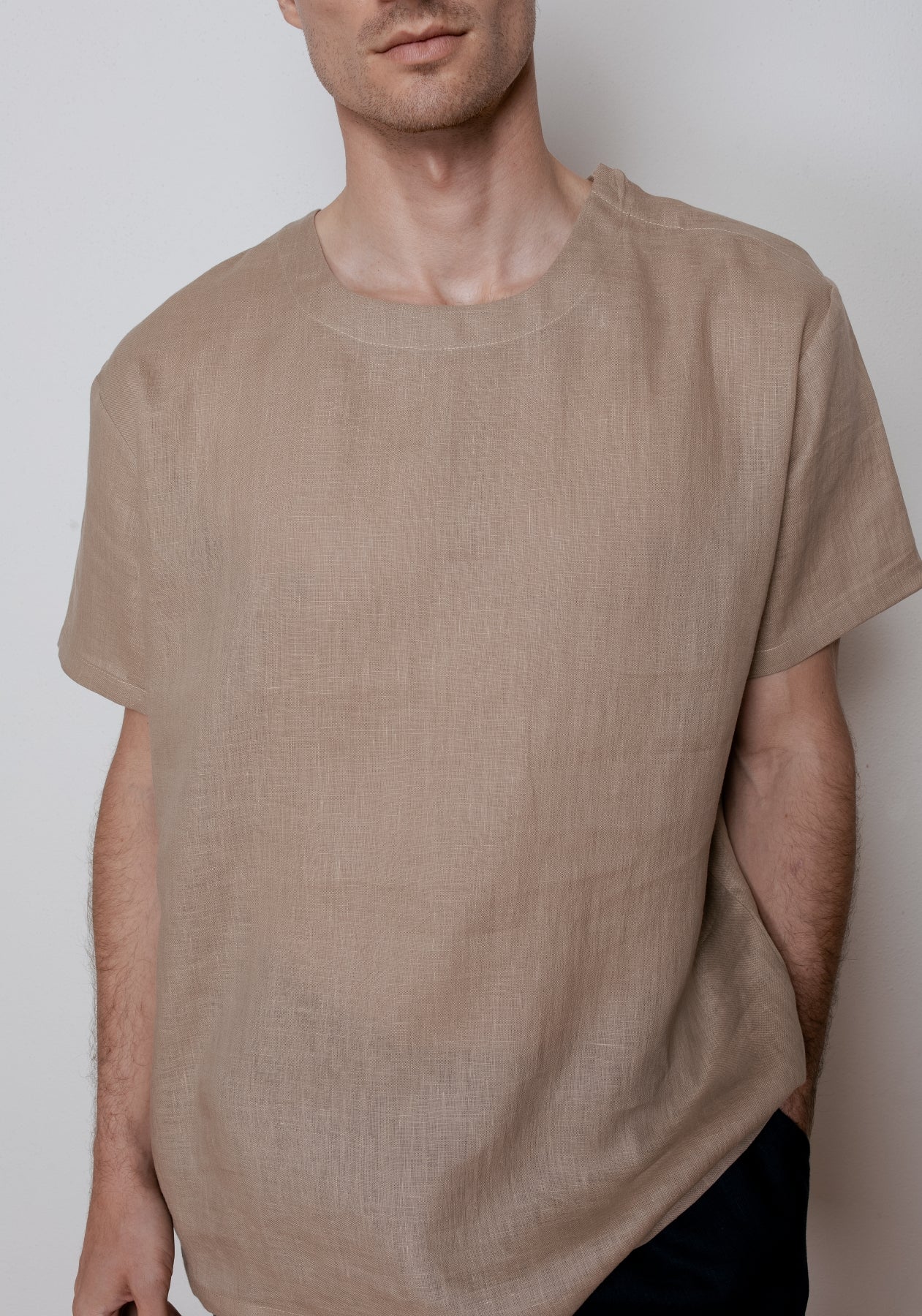 Pánske ľanové tričko regular - Beige Natural